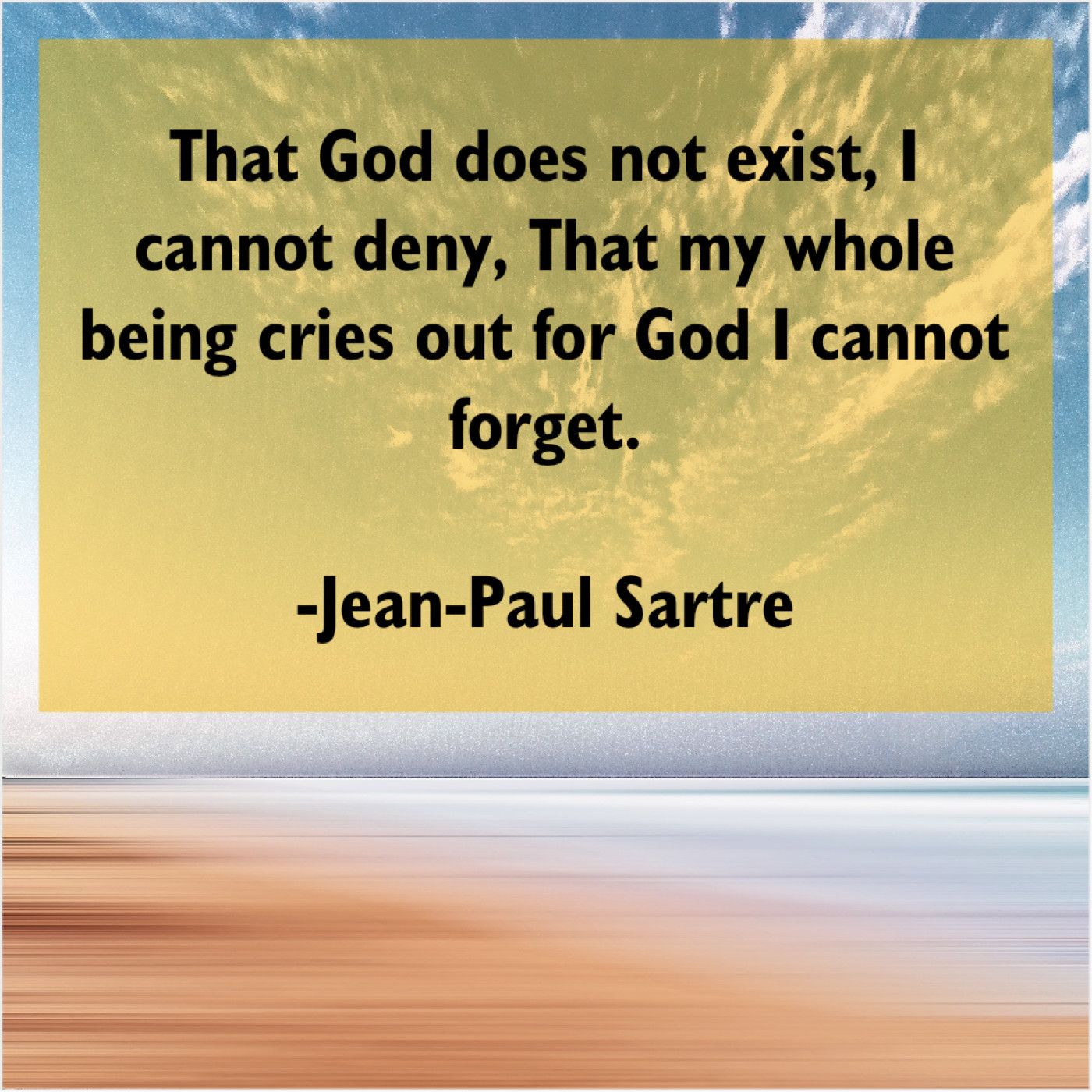 Jean-Paul Sartre Jean-Paul Sartre – That God does not exist… July 11, 2019 admin “That God does not exist, I cannot deny, That my whole being cries out for God I cannot forget.”-Jean-Paul Sartre