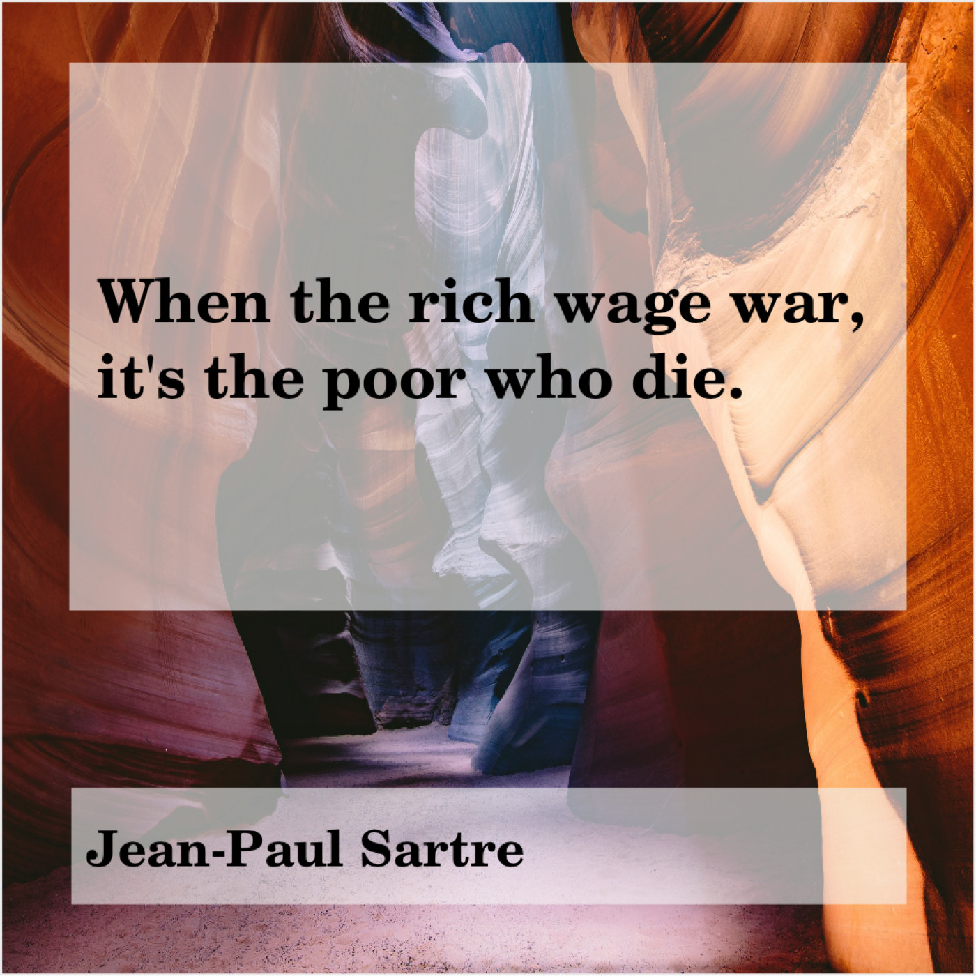 Jean-Paul Sartre Jean-Paul Sartre – When the rich wage war… December 3, 2018 admin “When the rich wage war, it’s the poor who die.”-Jean-Paul Sartre