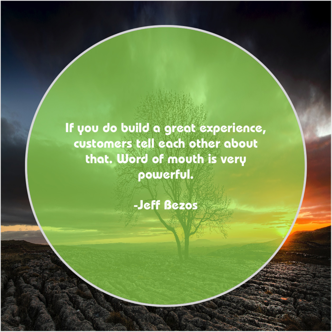 Jeff Bezos Jeff Bezos – If you do build a… January 12, 2019 admin “If you do build a great experience, customers tell each other about that. Word of mouth is very powerful.”-Jeff Bezos