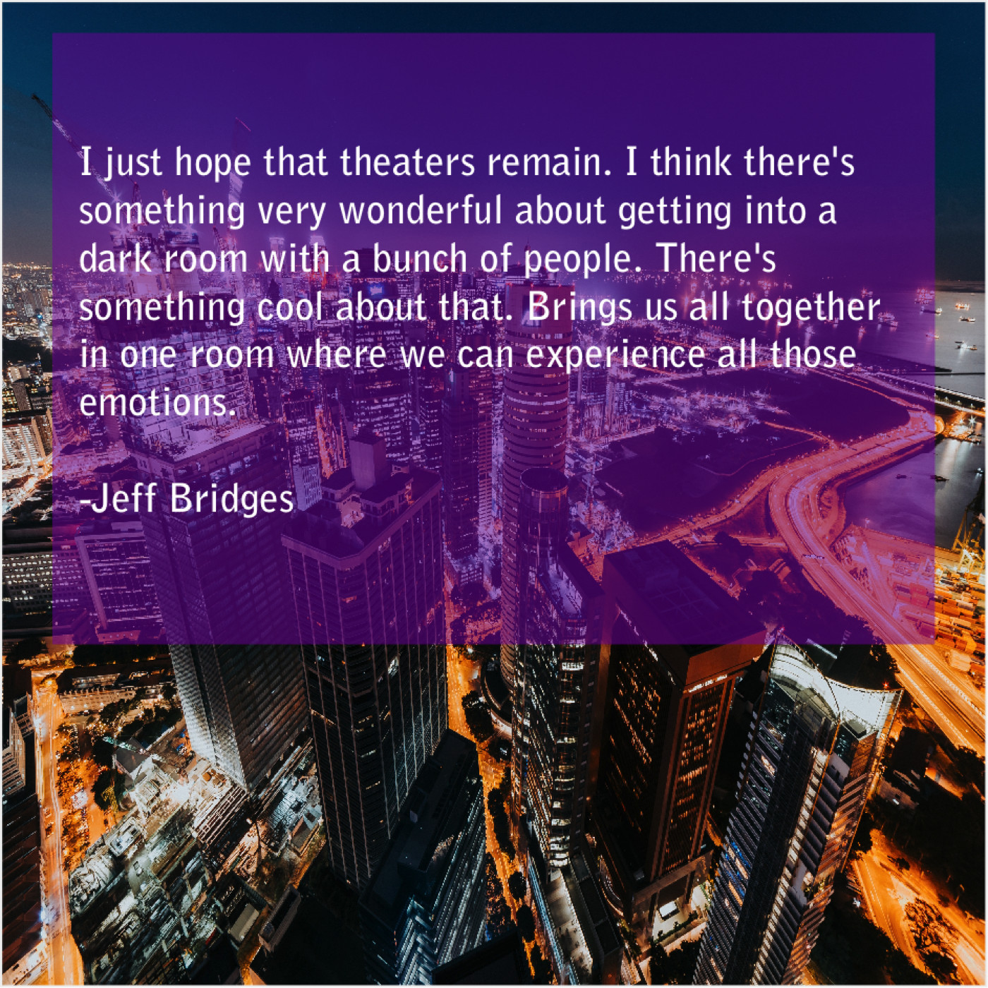 “I just hope that theaters remain. I think there’s something very wonderful about getting into a dark room with a bunch of people. There’s something cool about that. Brings us all together in one room where we can experience all those emotions.”