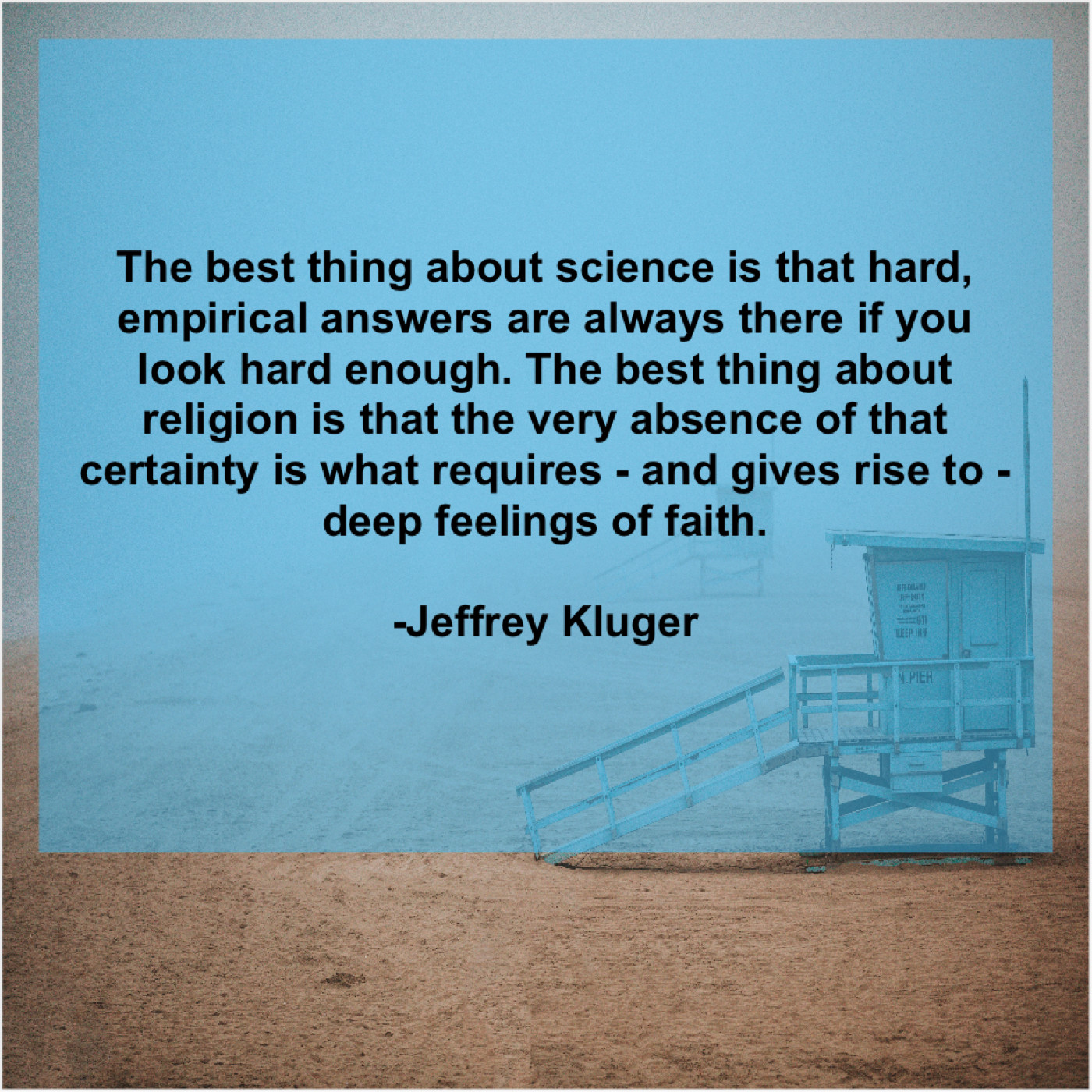 “The best thing about science is that hard, empirical answers are always there if you look hard enough. The best thing about religion is that the very absence of that certainty is what requires – and gives rise to – deep feelings of faith.”