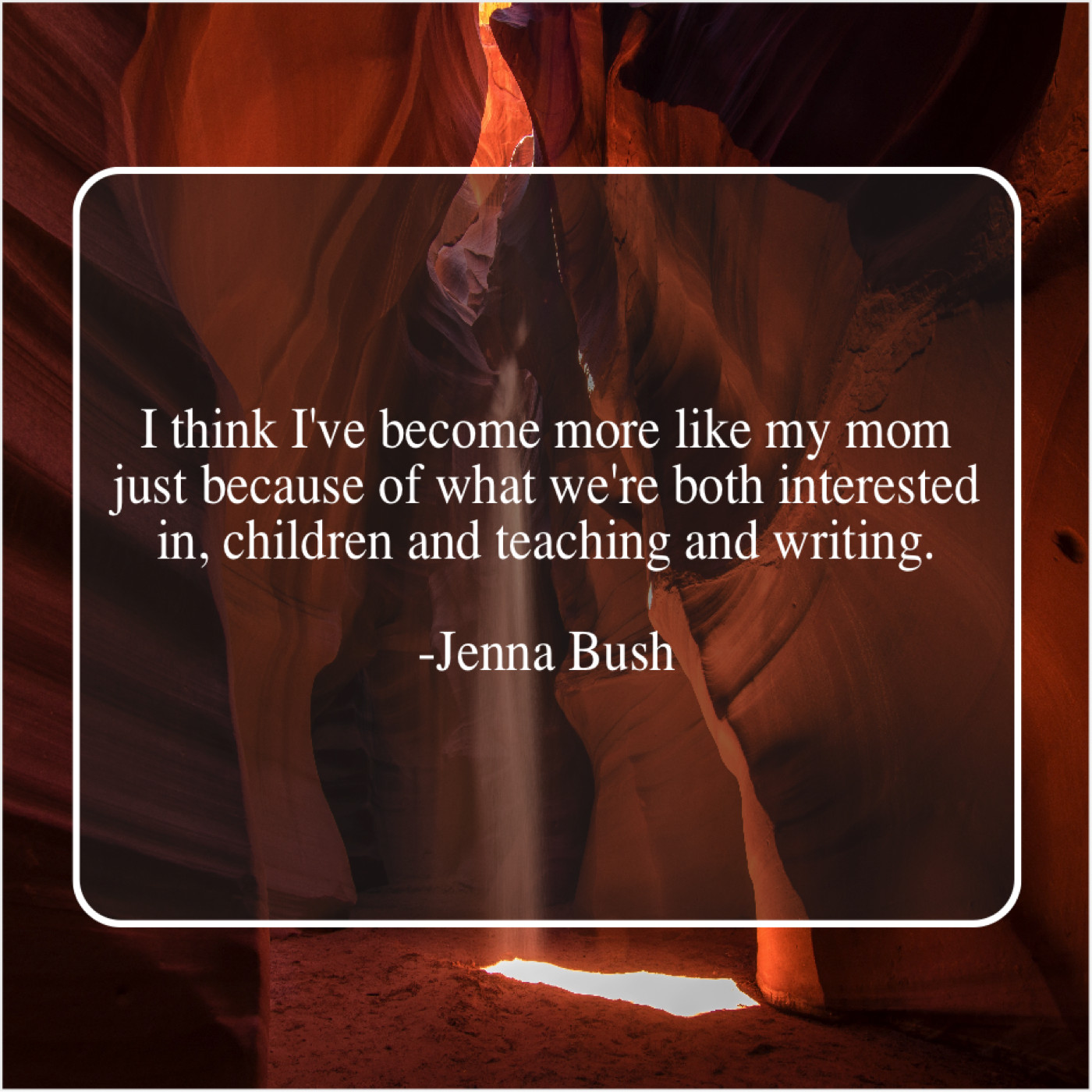 Jenna Bush Jenna Bush – I think I’ve become more… March 1, 2019 admin “I think I’ve become more like my mom just because of what we’re both interested in, children and teaching and writing.”-Jenna Bush