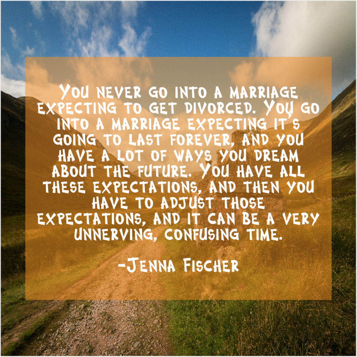 “You never go into a marriage expecting to get divorced. You go into a marriage expecting it’s going to last forever, and you have a lot of ways you dream about the future. You have all these expectations, and then you have to adjust those expectations, and it can be a very unnerving, confusing time.”