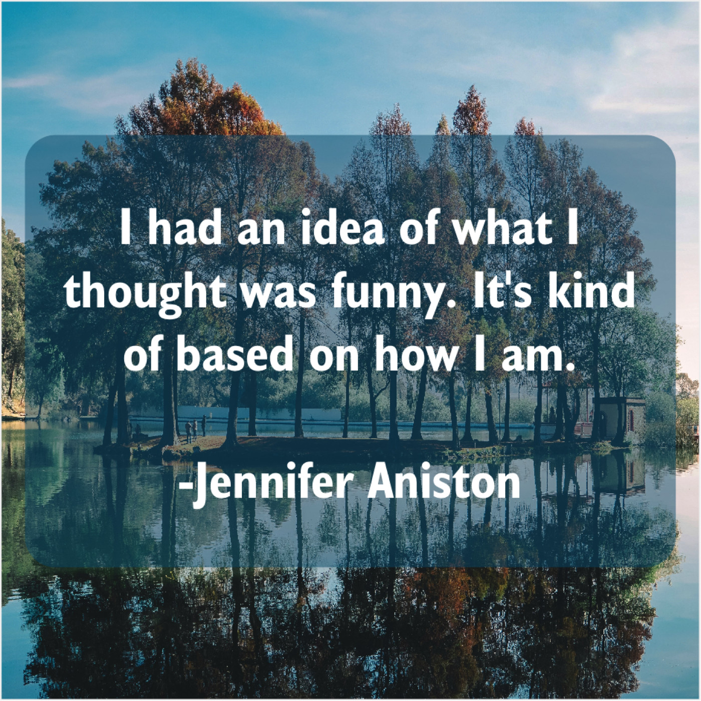 Jennifer Aniston Jennifer Aniston – I had an idea of… May 4, 2019 admin “I had an idea of what I thought was funny. It’s kind of based on how I am.”-Jennifer Aniston