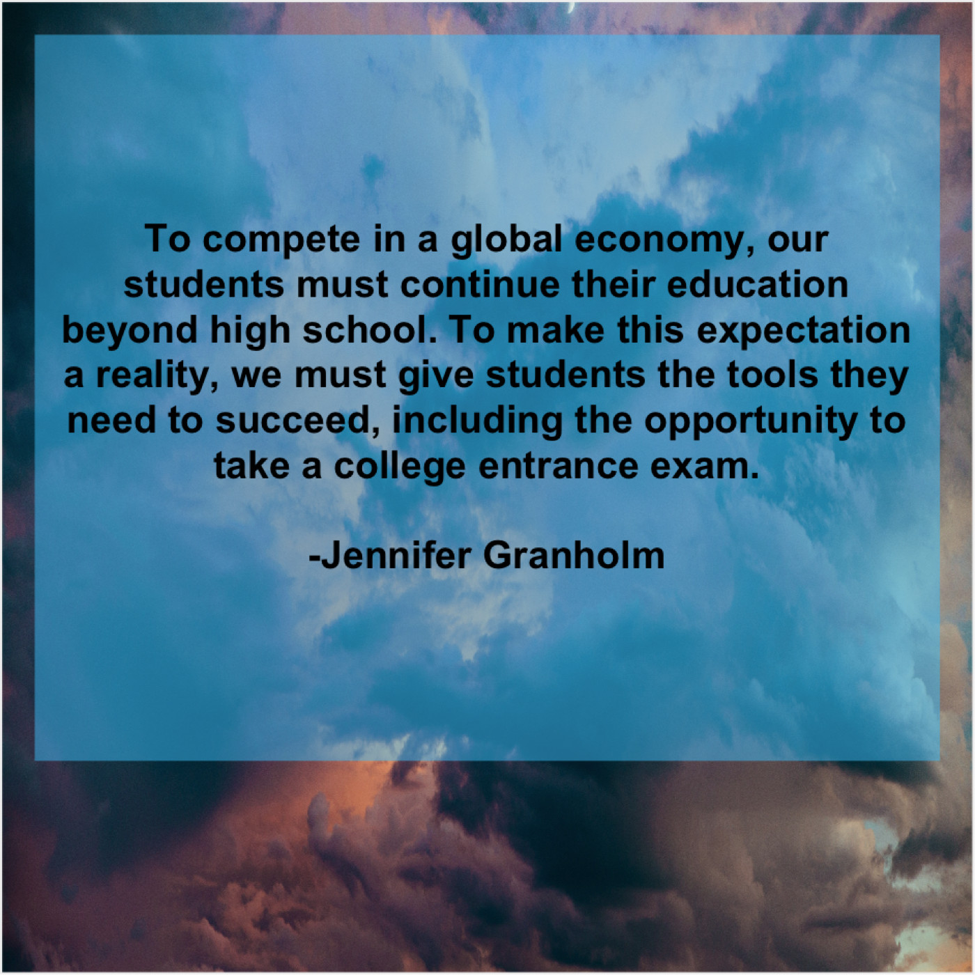 “To compete in a global economy, our students must continue their education beyond high school. To make this expectation a reality, we must give students the tools they need to succeed, including the opportunity to take a college entrance exam.”