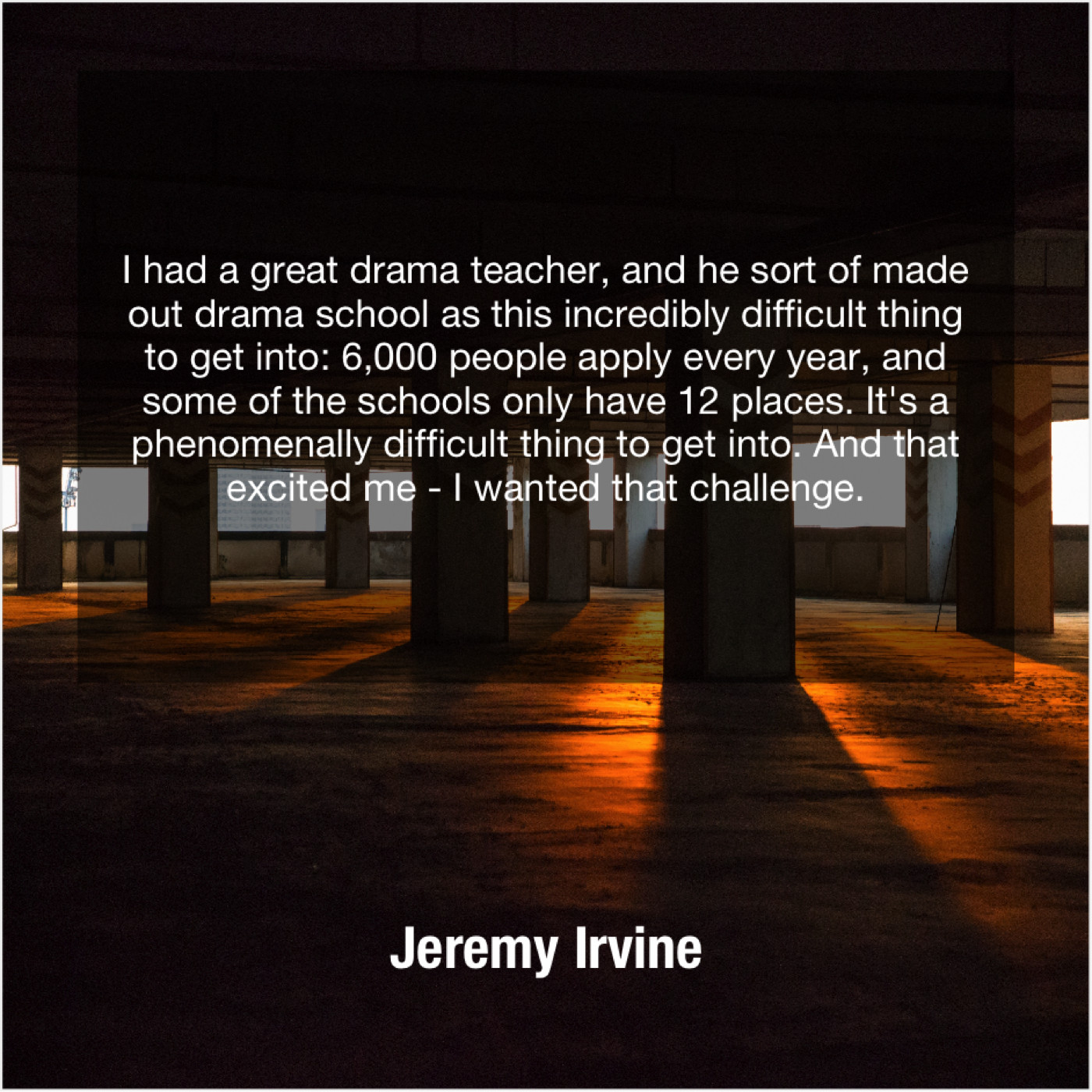 “I had a great drama teacher, and he sort of made out drama school as this incredibly difficult thing to get into: 6,000 people apply every year, and some of the schools only have 12 places. It’s a phenomenally difficult thing to get into. And that excited me – I wanted that challenge.”
