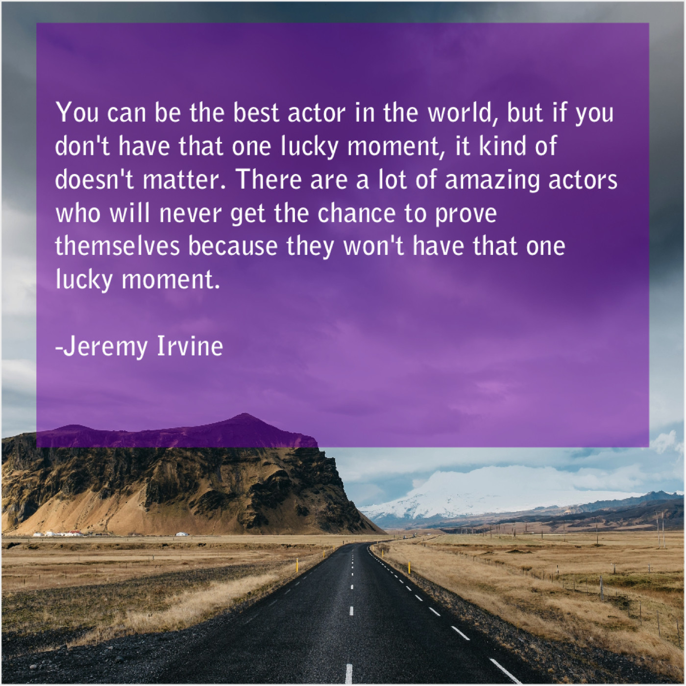 “You can be the best actor in the world, but if you don’t have that one lucky moment, it kind of doesn’t matter. There are a lot of amazing actors who will never get the chance to prove themselves because they won’t have that one lucky moment.”