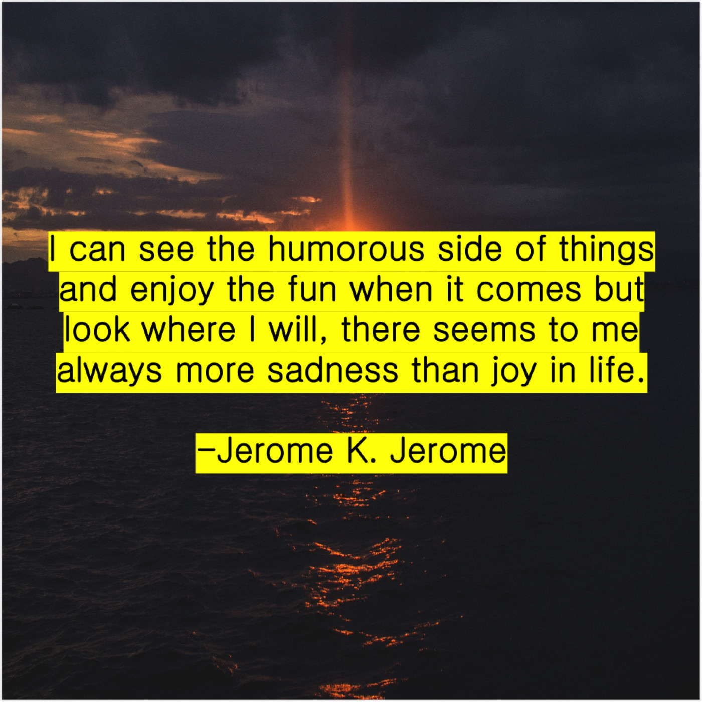 “I can see the humorous side of things and enjoy the fun when it comes but look where I will, there seems to me always more sadness than joy in life.”