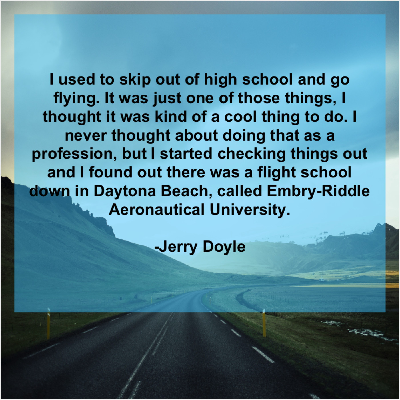 “I used to skip out of high school and go flying. It was just one of those things, I thought it was kind of a cool thing to do. I never thought about doing that as a profession, but I started checking things out and I found out there was a flight school down in Daytona Beach, called Embry-Riddle Aeronautical University.”