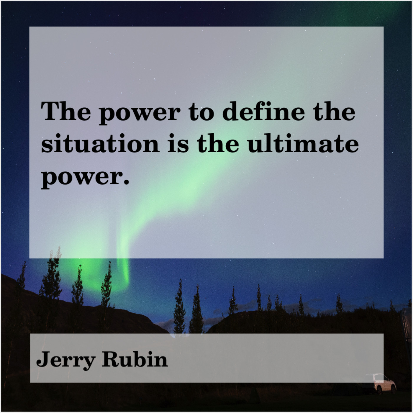 Jerry Rubin Jerry Rubin – The power to define the… May 29, 2019 admin “The power to define the situation is the ultimate power.”-Jerry Rubin