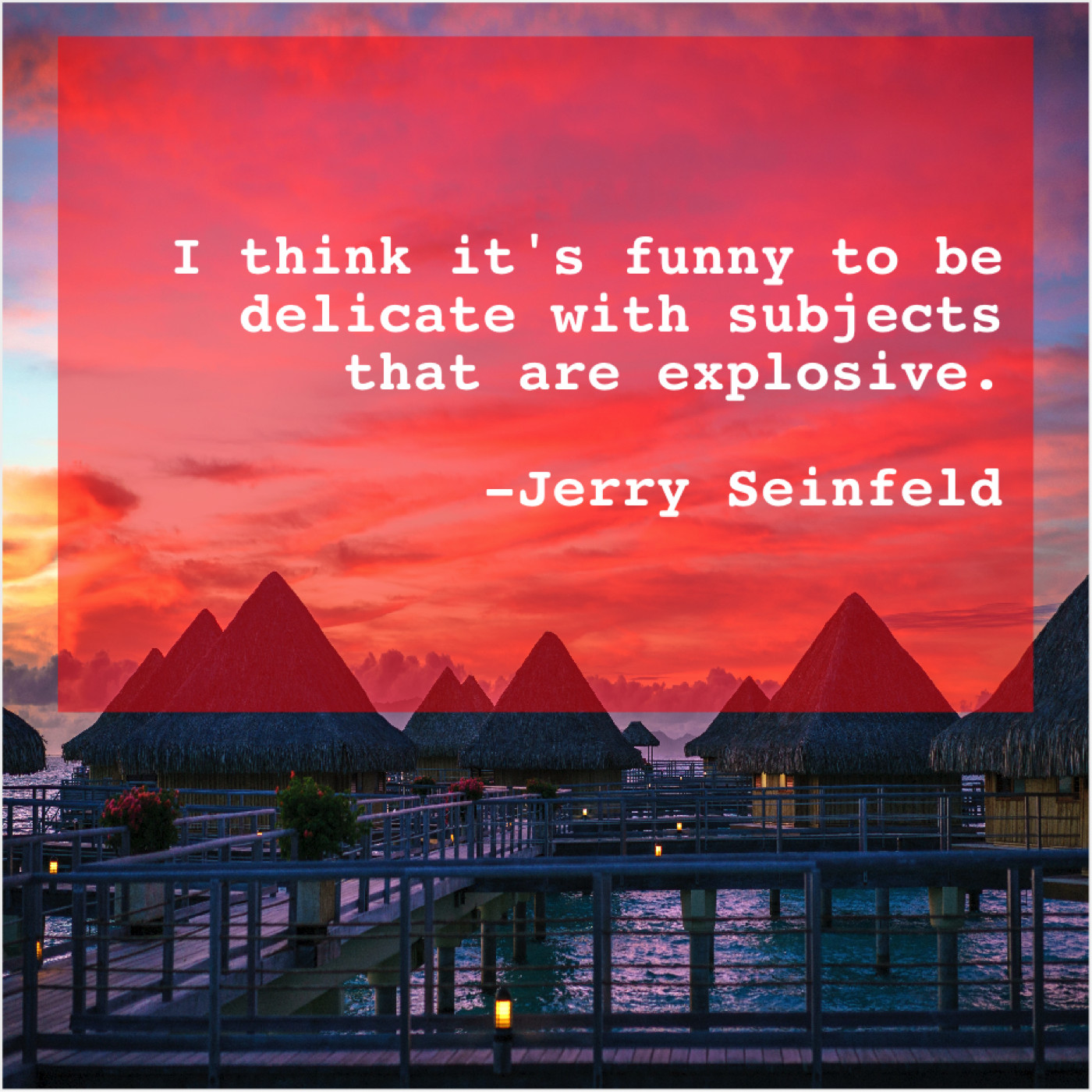 Jerry Seinfeld Jerry Seinfeld – I think it’s funny to… August 21, 2019 admin “I think it’s funny to be delicate with subjects that are explosive.”-Jerry Seinfeld