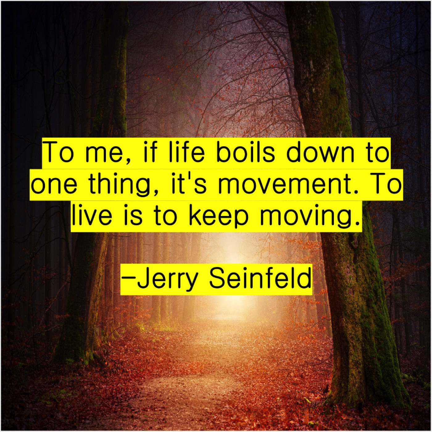 Jerry Seinfeld Jerry Seinfeld – To me, if life boils… July 26, 2019 admin “To me, if life boils down to one thing, it’s movement. To live is to keep moving.”-Jerry Seinfeld