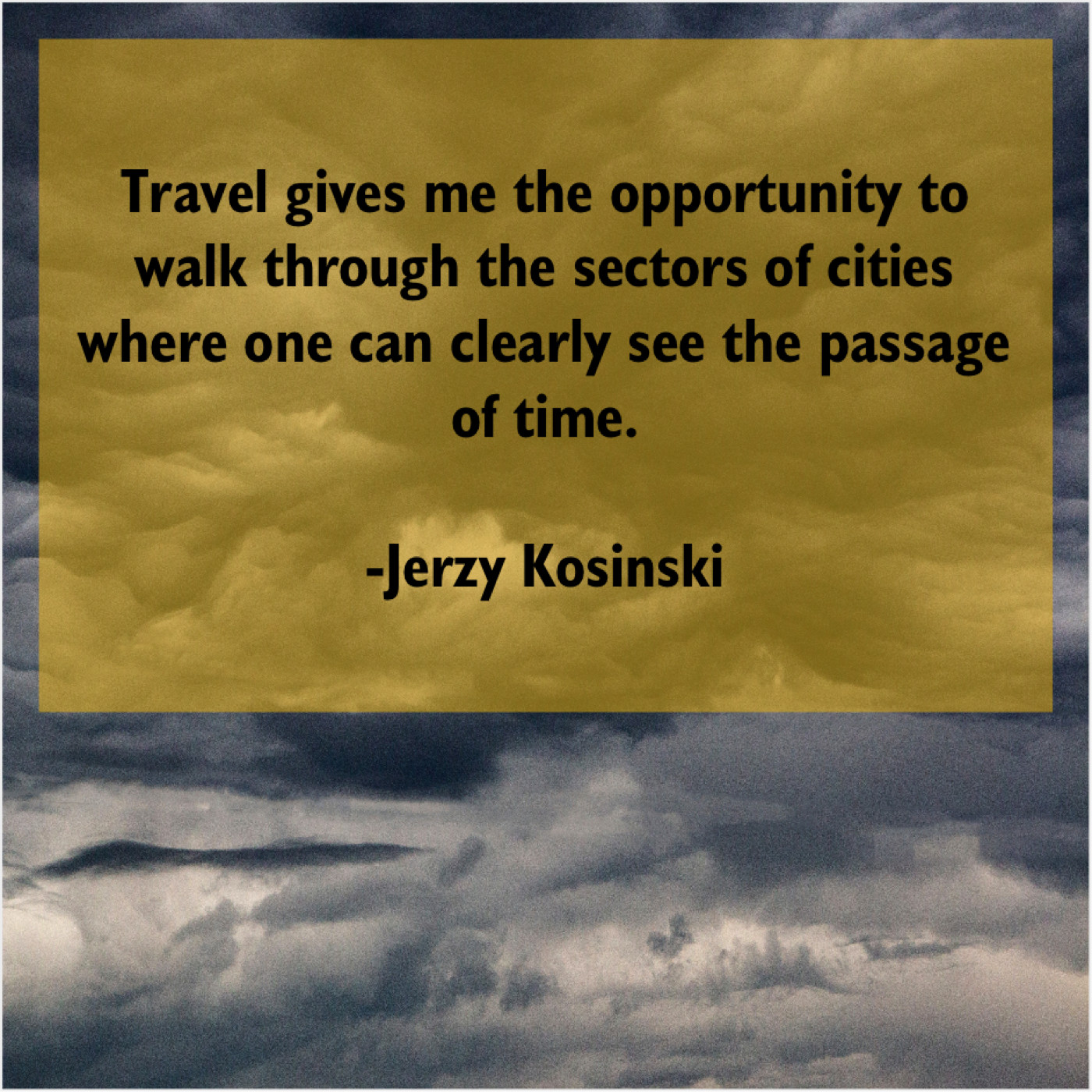Jerzy Kosinski Jerzy Kosinski – Travel gives me the opportunity… December 19, 2018 admin “Travel gives me the opportunity to walk through the sectors of cities where one can clearly see the passage of time.”-Jerzy Kosinski