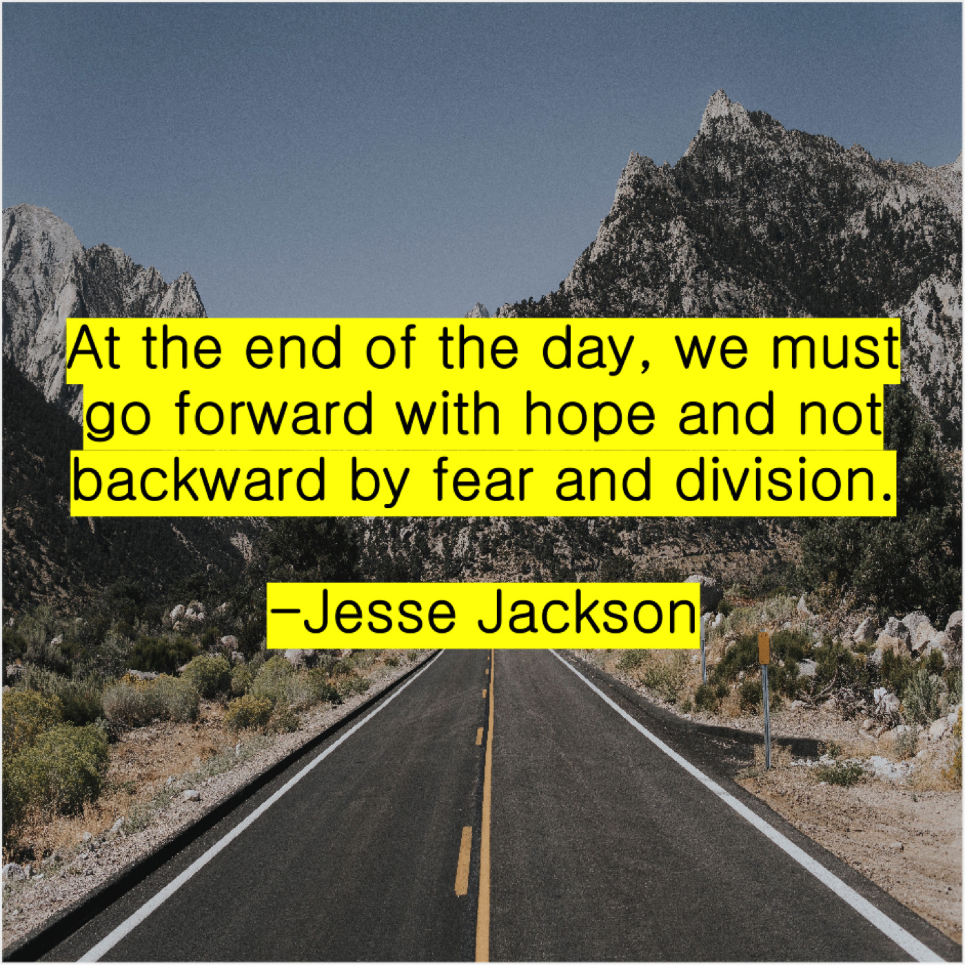 Jesse Jackson Jesse Jackson – At the end of the… September 17, 2019 admin “At the end of the day, we must go forward with hope and not backward by fear and division.”-Jesse Jackson