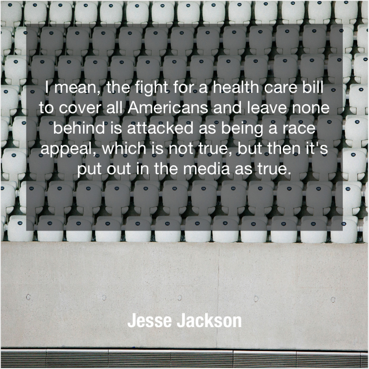 Jesse Jackson Jesse Jackson – I mean, the fight for… January 13, 2019 admin “I mean, the fight for a health care bill to cover all Americans and leave none behind is attacked as being a race appeal, which is not true, but then it’s put out in the media as true.”-Jesse Jackson