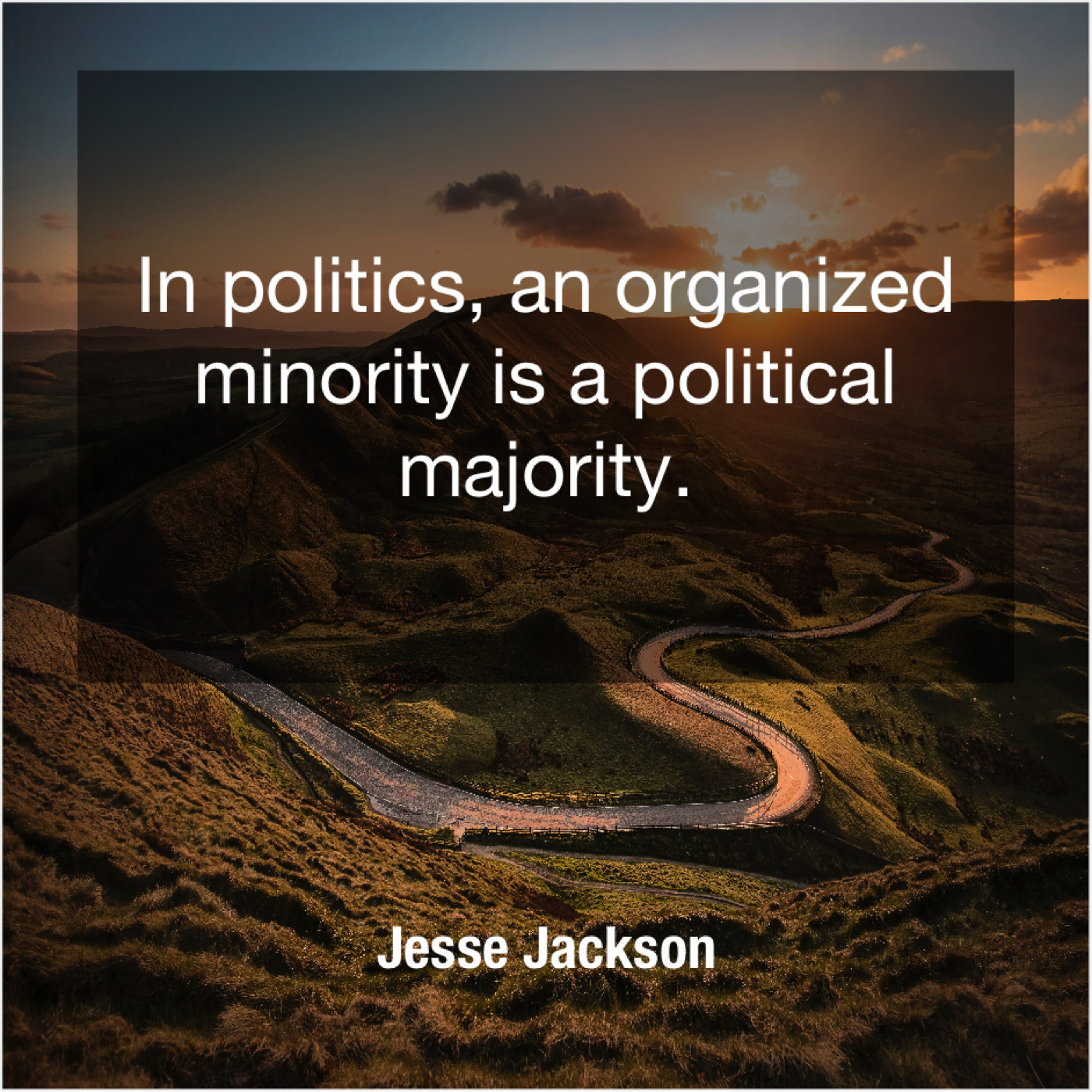Jesse Jackson Jesse Jackson – In politics, an organized minority… February 8, 2019 admin “In politics, an organized minority is a political majority.”-Jesse Jackson