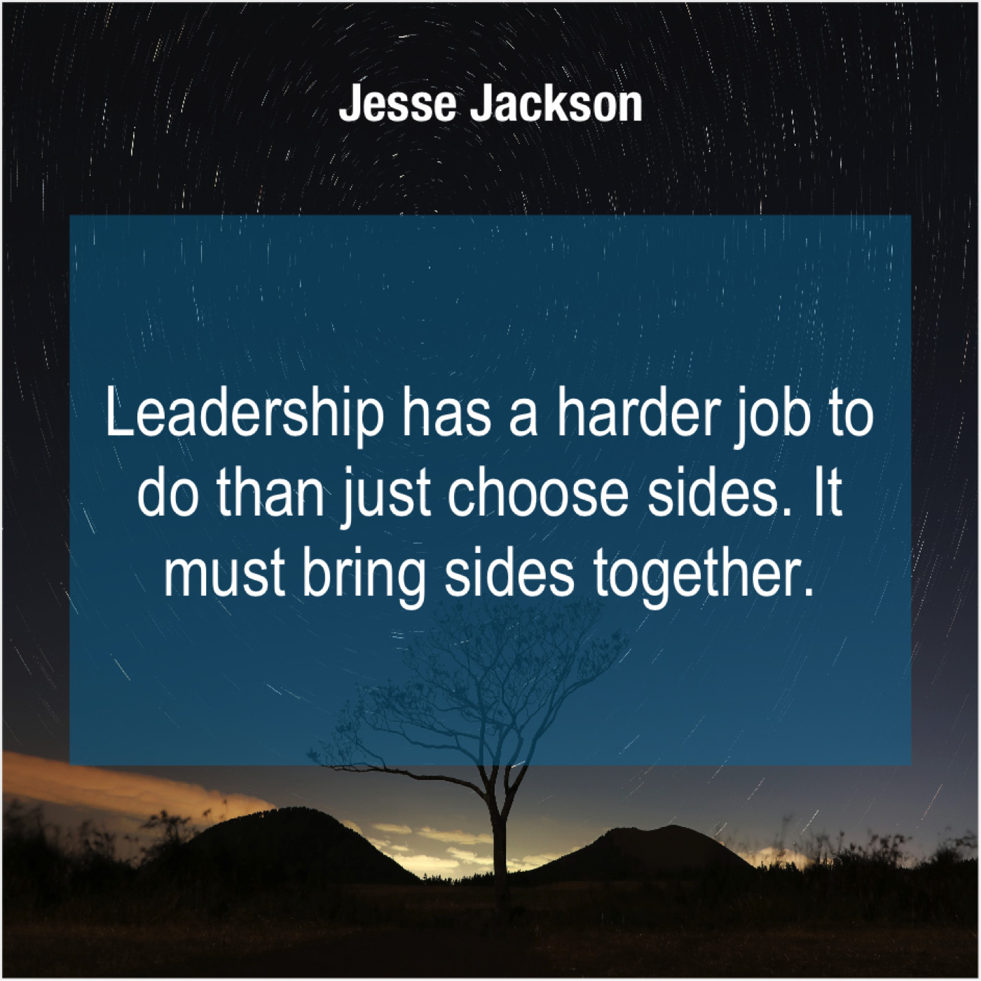 “Leadership has a harder job to do than just choose sides. It must bring sides together.”