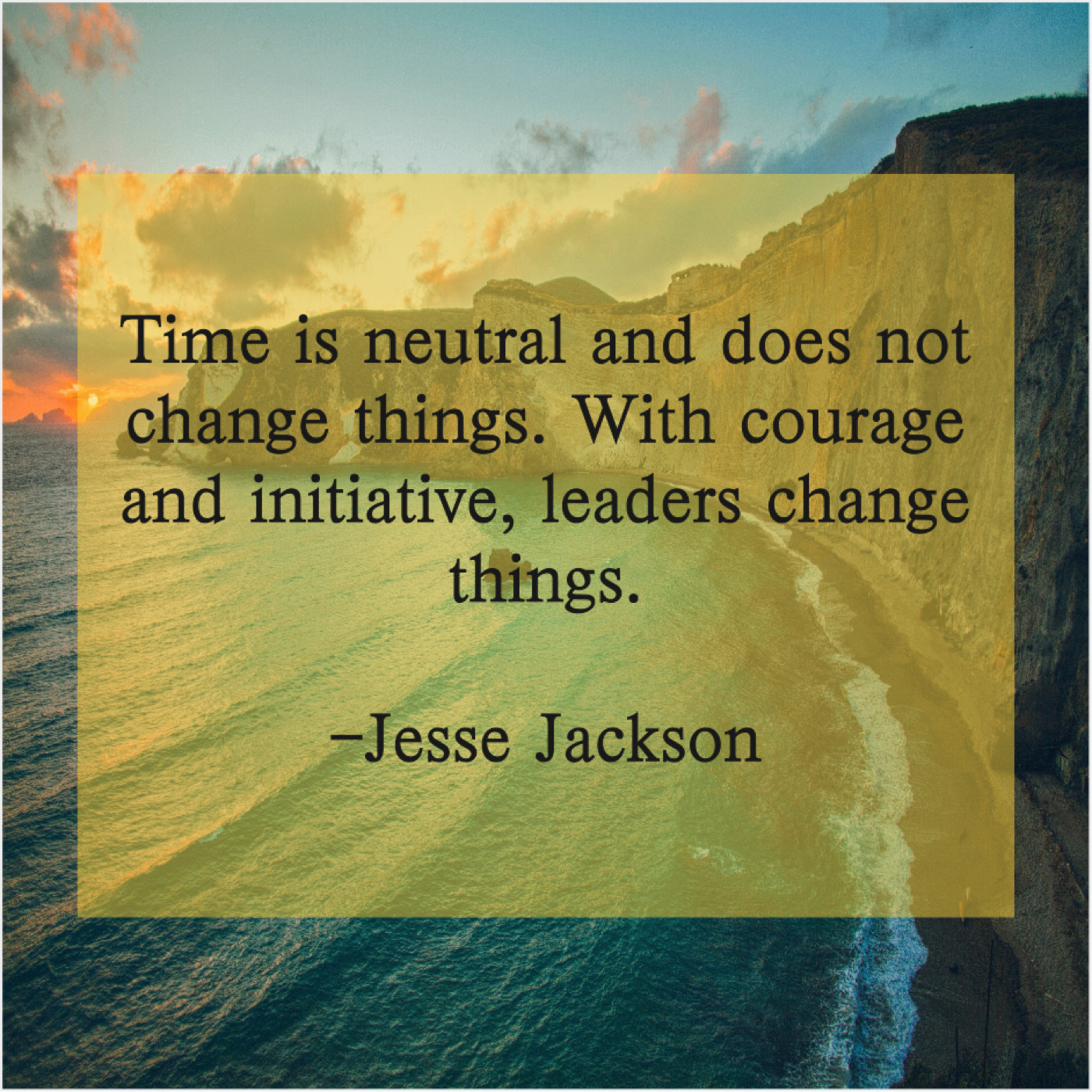 Jesse Jackson Jesse Jackson – Time is neutral and does… April 13, 2019 admin “Time is neutral and does not change things. With courage and initiative, leaders change things.”-Jesse Jackson
