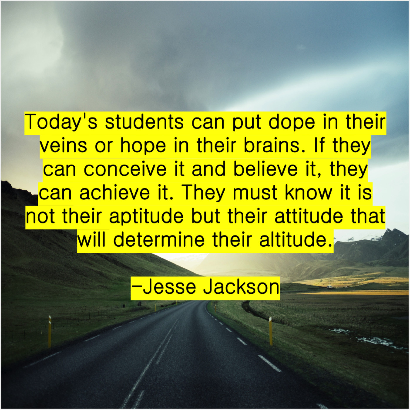 Jesse Jackson Jesse Jackson – Today’s students can put dope… August 19, 2019 admin “Today’s students can put dope in their veins or hope in their brains. If they can conceive it and believe it, they can achieve it. They must know it is not their aptitude but their attitude that will determine their altitude.”-Jesse Jackson