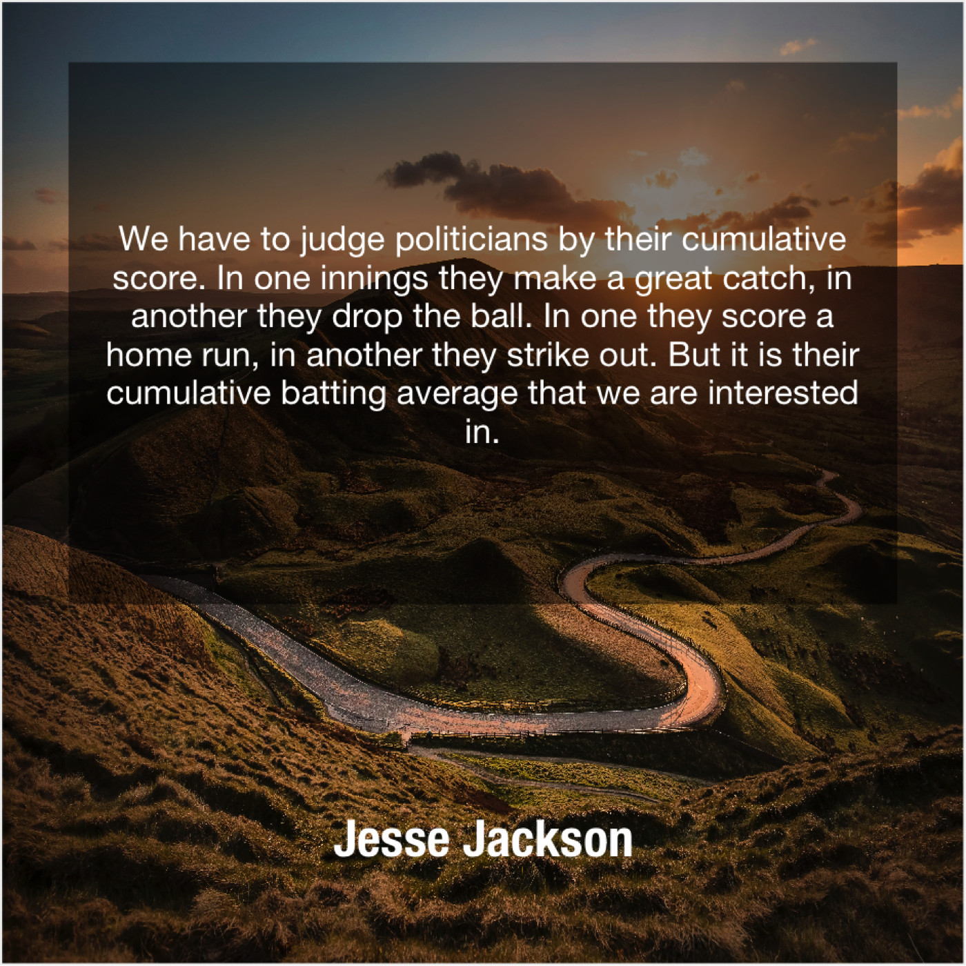 “We have to judge politicians by their cumulative score. In one innings they make a great catch, in another they drop the ball. In one they score a home run, in another they strike out. But it is their cumulative batting average that we are interested in.”