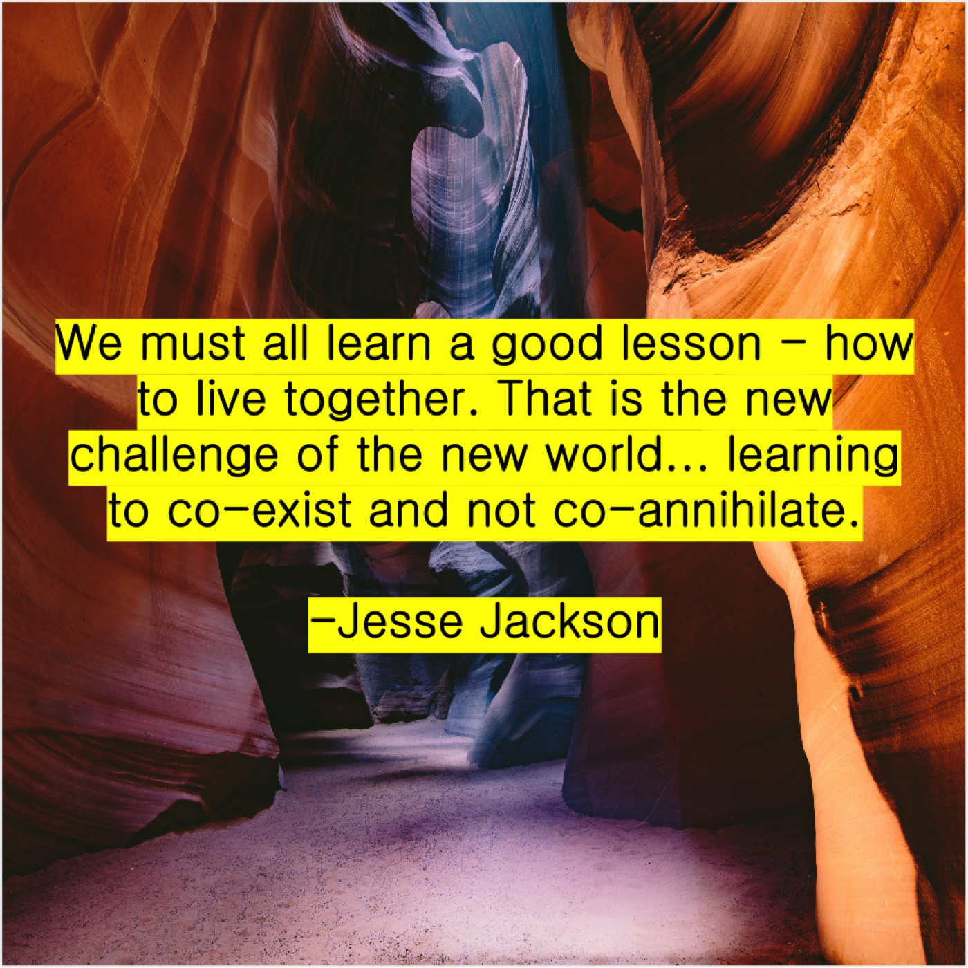 Jesse Jackson Jesse Jackson – We must all learn a… October 12, 2019 admin “We must all learn a good lesson – how to live together. That is the new challenge of the new world… learning to co-exist and not co-annihilate.”-Jesse Jackson