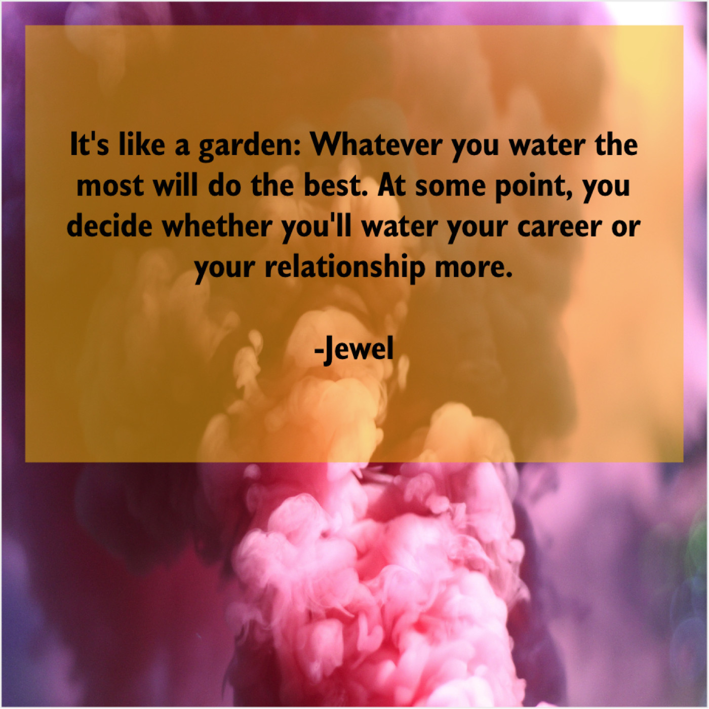 Jewel Jewel – It’s like a garden: Whatever… December 31, 2018 admin “It’s like a garden: Whatever you water the most will do the best. At some point, you decide whether you’ll water your career or your relationship more.”-Jewel