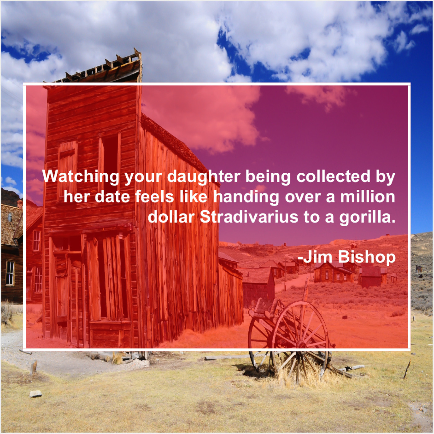 Jim Bishop Jim Bishop – Watching your daughter being collected… July 16, 2019 admin “Watching your daughter being collected by her date feels like handing over a million dollar Stradivarius to a gorilla.”-Jim Bishop