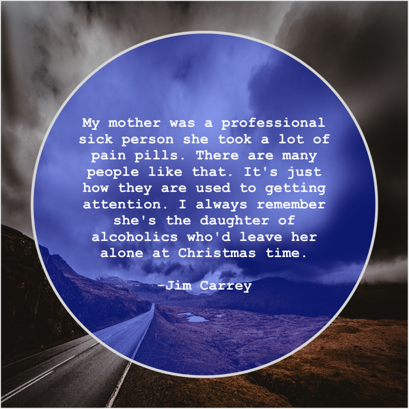 “My mother was a professional sick person she took a lot of pain pills. There are many people like that. It’s just how they are used to getting attention. I always remember she’s the daughter of alcoholics who’d leave her alone at Christmas time.”