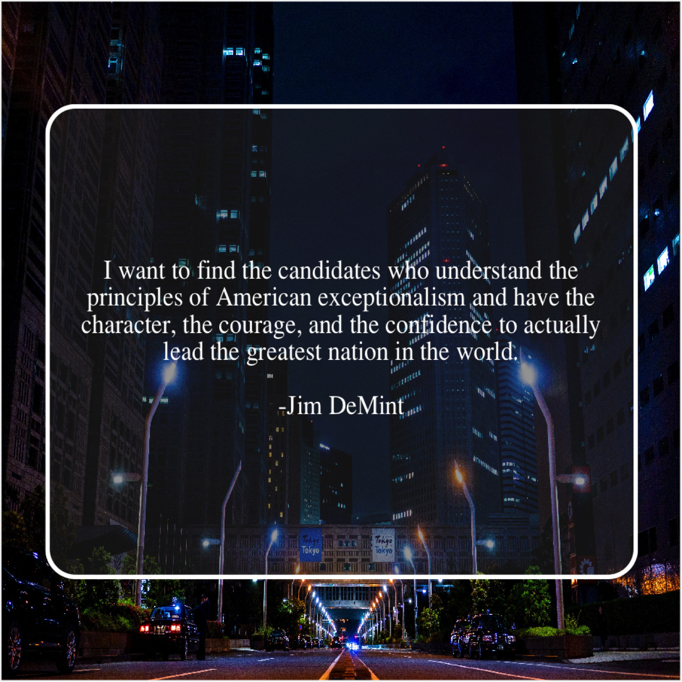 Jim DeMint Jim DeMint – I want to find the… August 4, 2019 admin “I want to find the candidates who understand the principles of American exceptionalism and have the character, the courage, and the confidence to actually lead the greatest nation in the world.”-Jim DeMint