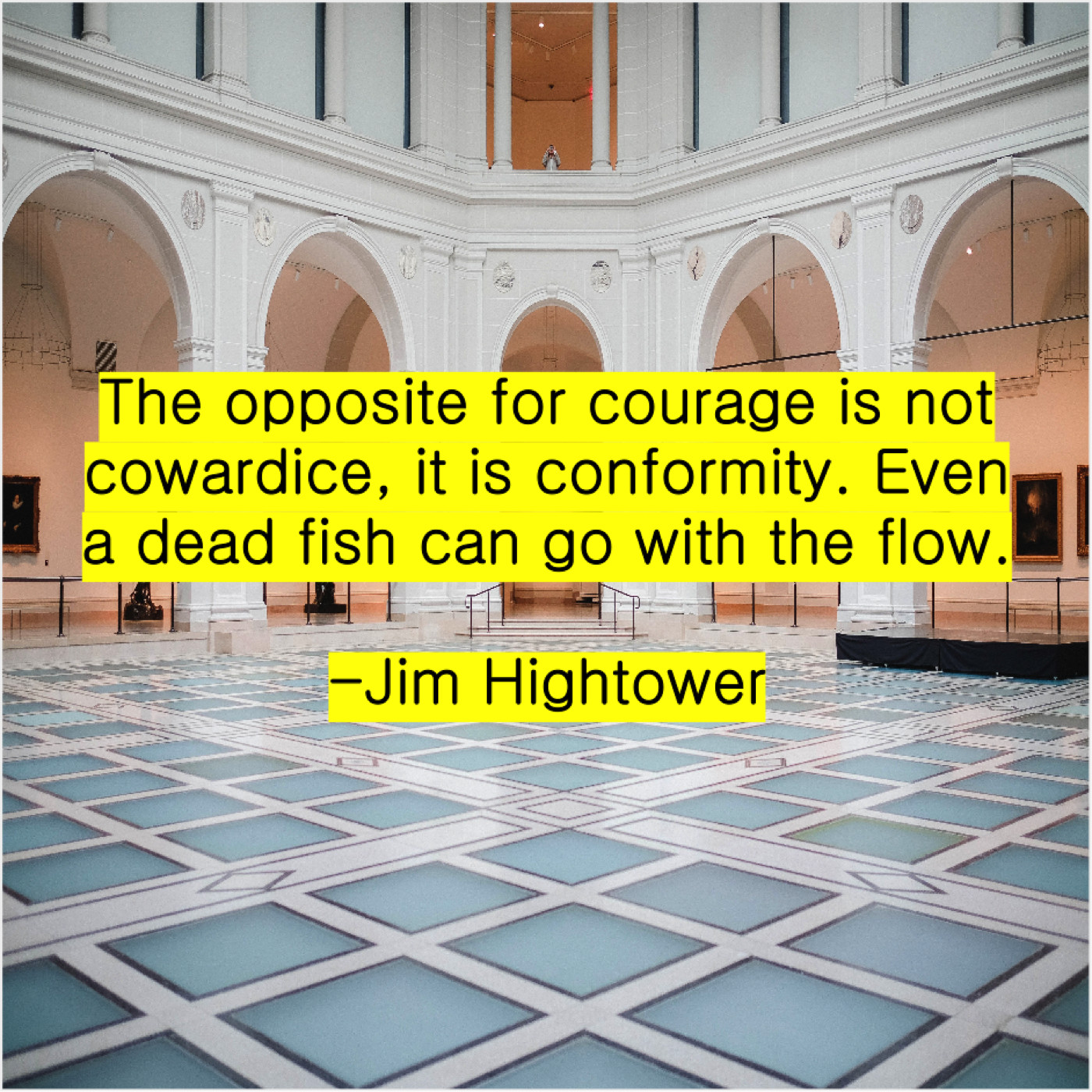 Jim Hightower Jim Hightower – The opposite for courage is… March 24, 2019 admin “The opposite for courage is not cowardice, it is conformity. Even a dead fish can go with the flow.”-Jim Hightower