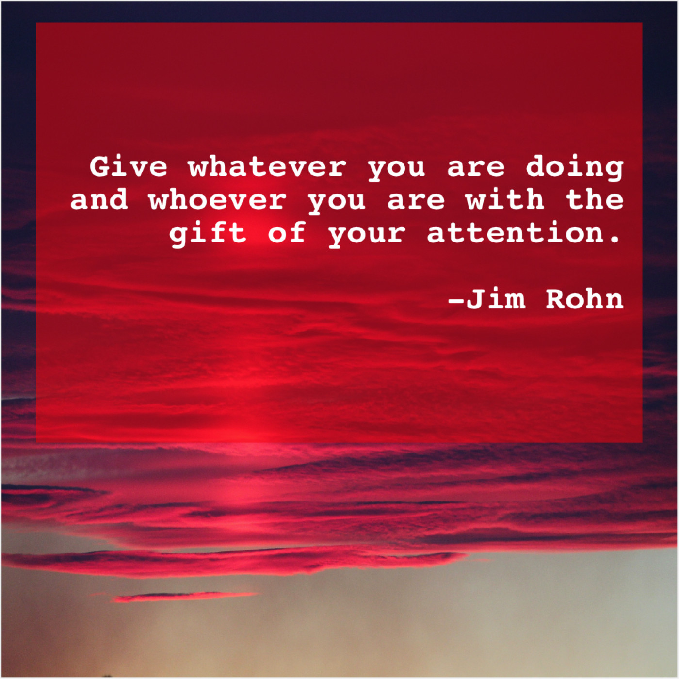 Jim Rohn Jim Rohn – Give whatever you are doing… September 23, 2019 admin “Give whatever you are doing and whoever you are with the gift of your attention.”-Jim Rohn