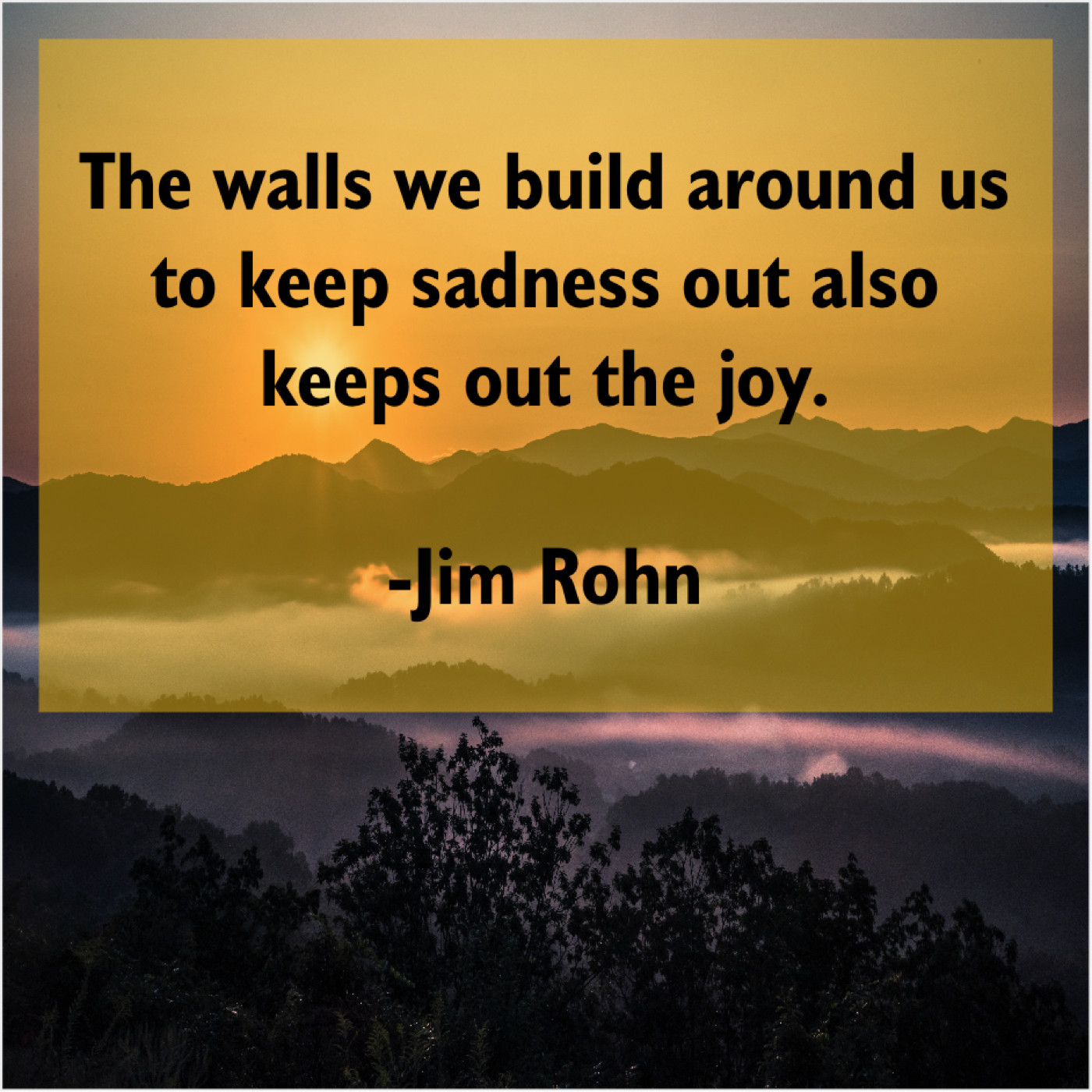 Jim Rohn Jim Rohn – The walls we build around… November 22, 2018 admin “The walls we build around us to keep sadness out also keeps out the joy.”-Jim Rohn