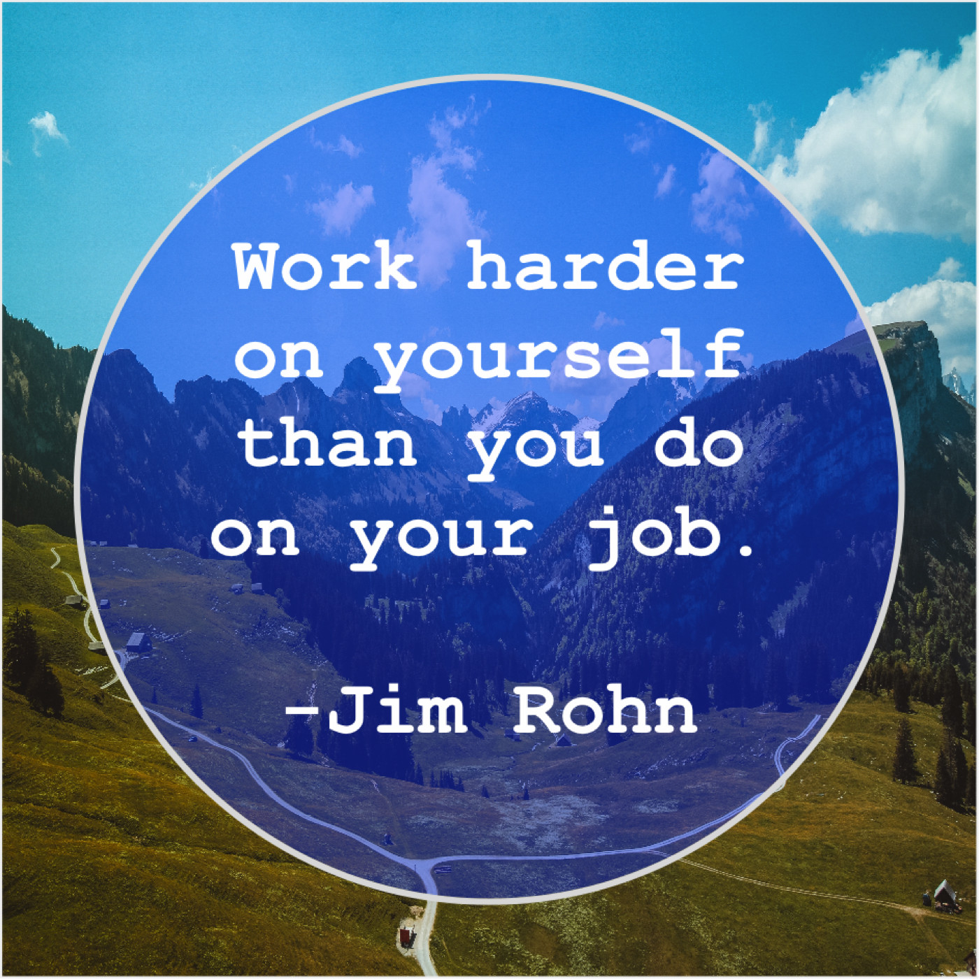 Jim Rohn Jim Rohn – Work harder on yourself than… August 24, 2019 admin “Work harder on yourself than you do on your job.”-Jim Rohn