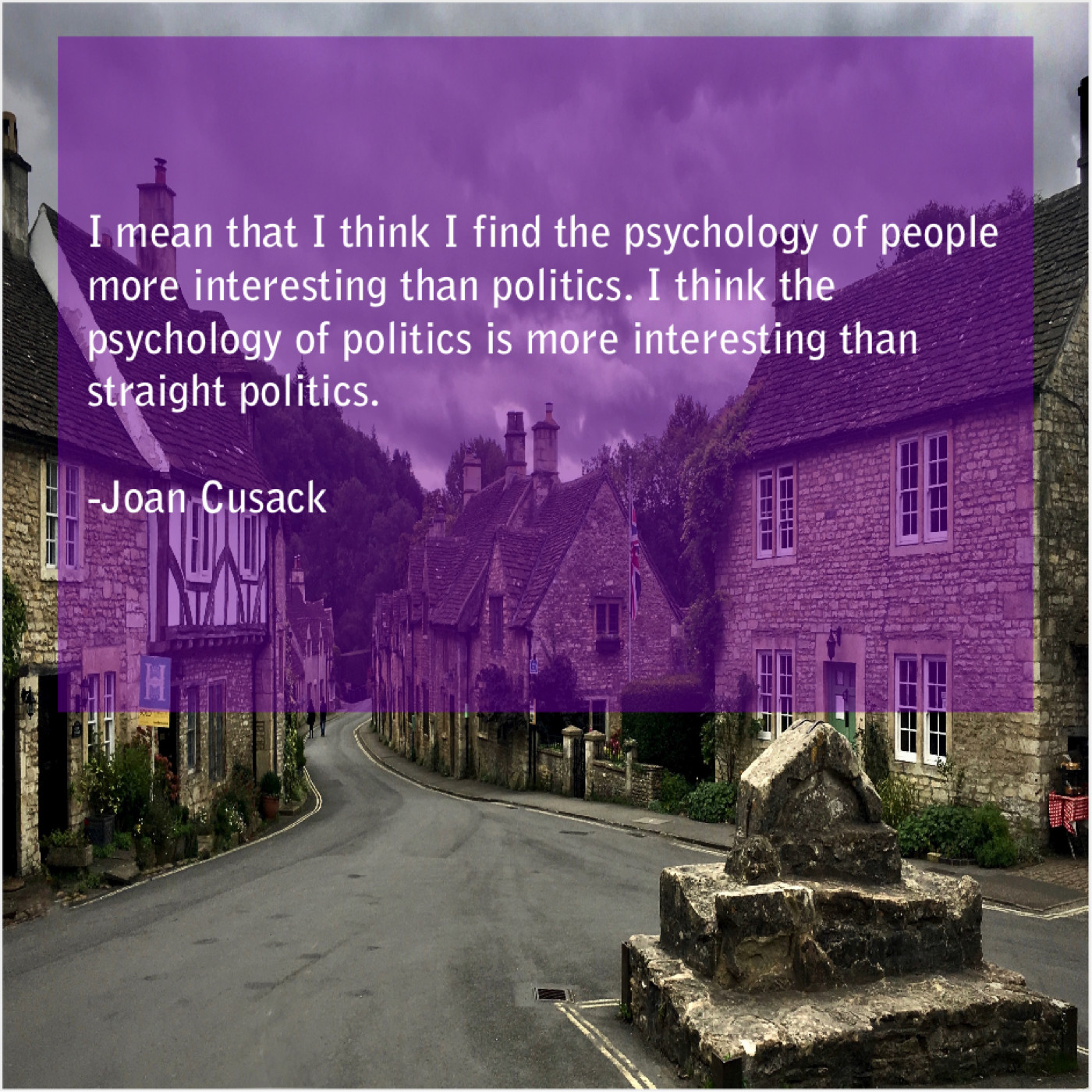 Joan Cusack Joan Cusack – I mean that I think… December 29, 2018 admin “I mean that I think I find the psychology of people more interesting than politics. I think the psychology of politics is more interesting than straight politics.”-Joan Cusack