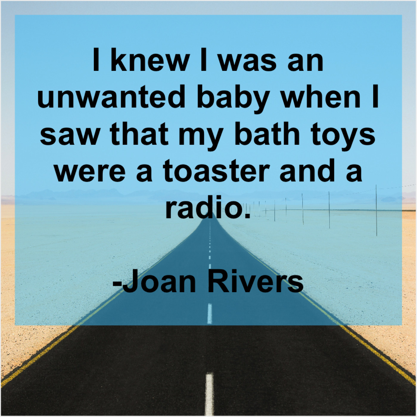 Joan Rivers Joan Rivers – I knew I was an… December 19, 2018 admin “I knew I was an unwanted baby when I saw that my bath toys were a toaster and a radio.”-Joan Rivers