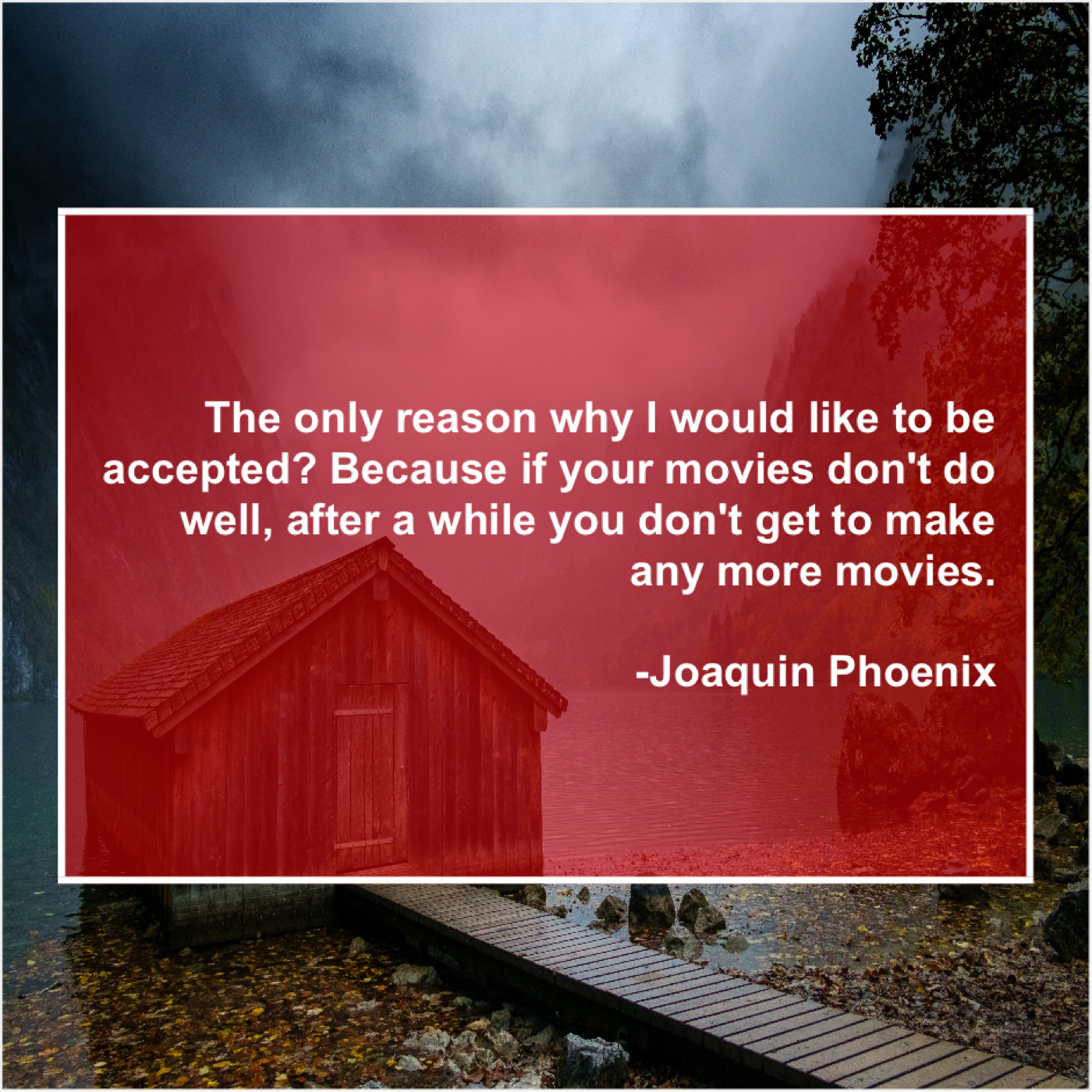 Joaquin Phoenix Joaquin Phoenix – The only reason why I… December 5, 2018 admin “The only reason why I would like to be accepted? Because if your movies don’t do well, after a while you don’t get to make any more movies.”-Joaquin Phoenix