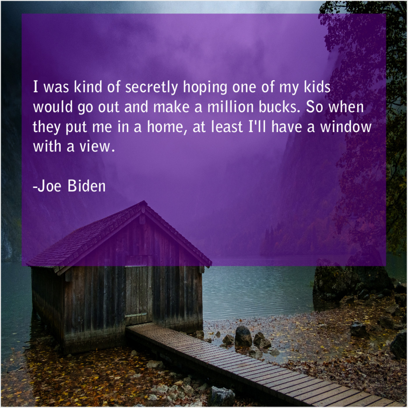 “I was kind of secretly hoping one of my kids would go out and make a million bucks. So when they put me in a home, at least I’ll have a window with a view.”
