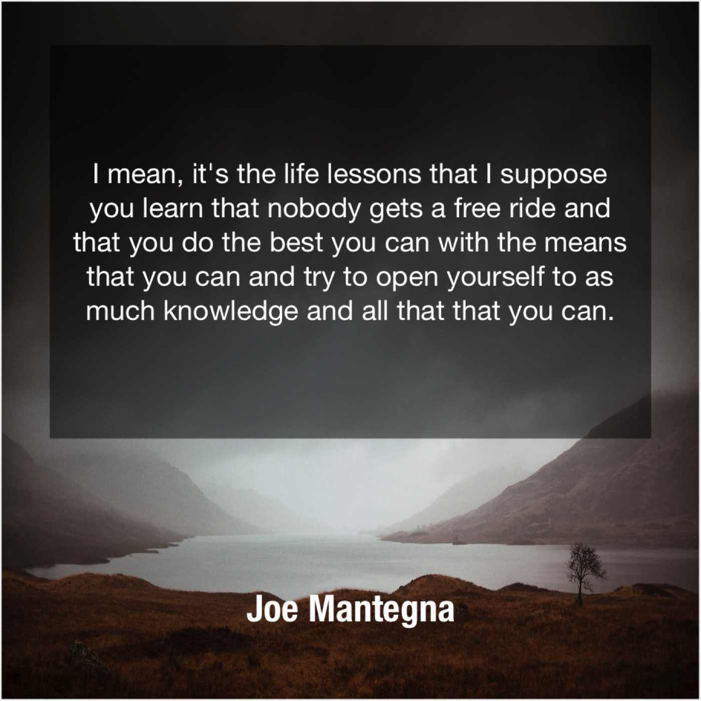 Joe Mantegna Joe Mantegna – I mean, it’s the life… April 8, 2019 admin “I mean, it’s the life lessons that I suppose you learn that nobody gets a free ride and that you do the best you can with the means that you can and try to open yourself to as much knowledge and all that that you can.”-Joe Mantegna