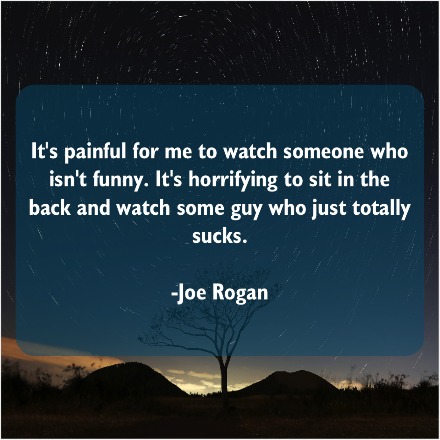 Joe Rogan Joe Rogan – It’s painful for me to… December 15, 2018 admin “It’s painful for me to watch someone who isn’t funny. It’s horrifying to sit in the back and watch some guy who just totally sucks.”-Joe Rogan