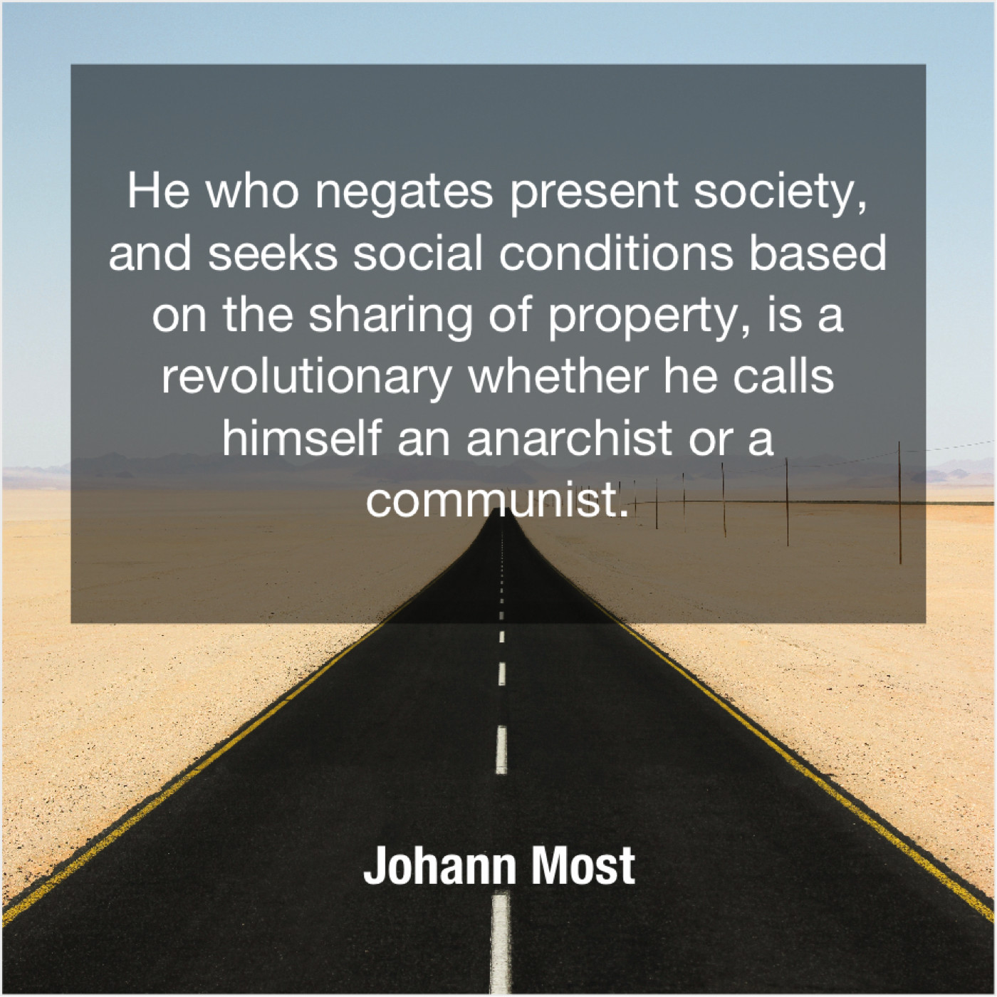Johann Most Johann Most – He who negates present society… July 26, 2019 admin “He who negates present society, and seeks social conditions based on the sharing of property, is a revolutionary whether he calls himself an anarchist or a communist.”-Johann Most