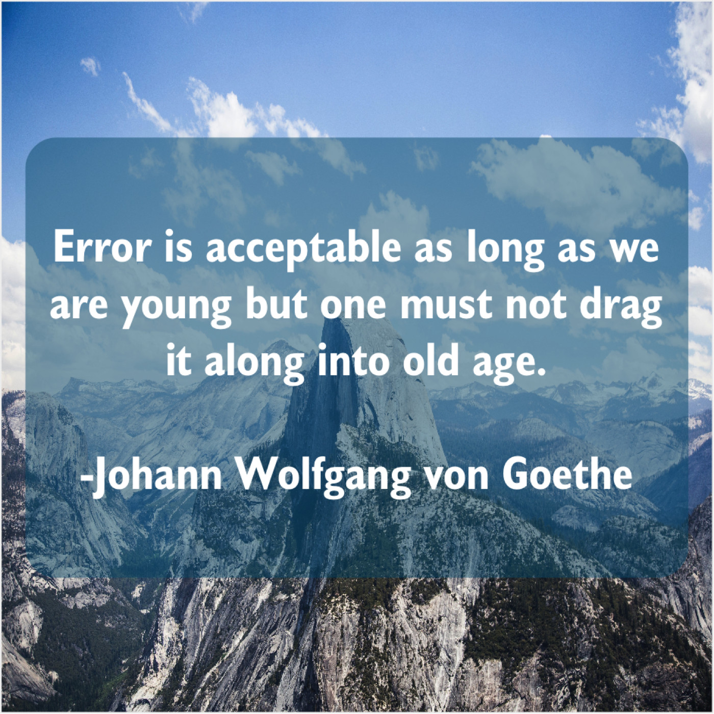 Johann Wolfgang von Goethe Johann Wolfgang von Goethe – Error is acceptable as long… August 24, 2019 admin “Error is acceptable as long as we are young but one must not drag it along into old age.”-Johann Wolfgang von Goethe