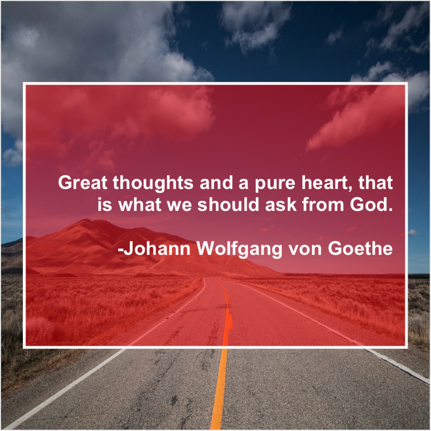 Johann Wolfgang von Goethe Johann Wolfgang von Goethe – Great thoughts and a pure… May 8, 2019 admin “Great thoughts and a pure heart, that is what we should ask from God.”-Johann Wolfgang von Goethe