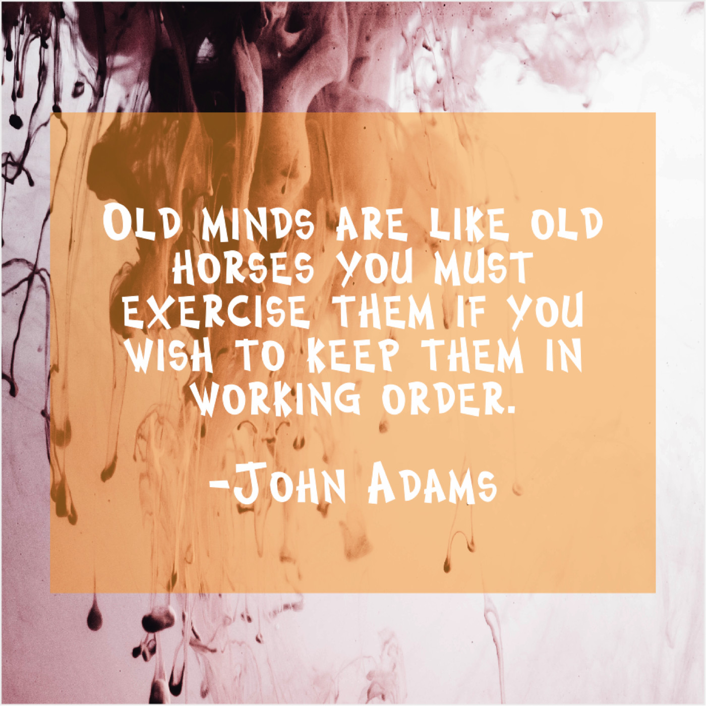 John Adams John Adams – Old minds are like old… March 7, 2019 admin “Old minds are like old horses you must exercise them if you wish to keep them in working order.”-John Adams