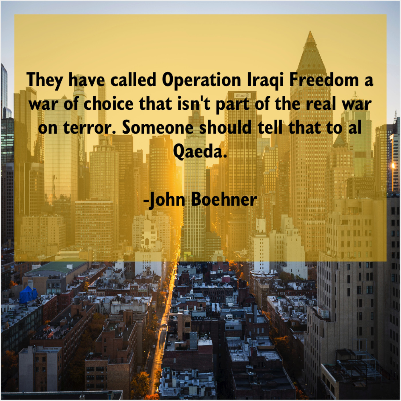 John Boehner John Boehner – They have called Operation Iraqi… April 9, 2019 admin “They have called Operation Iraqi Freedom a war of choice that isn’t part of the real war on terror. Someone should tell that to al Qaeda.”-John Boehner