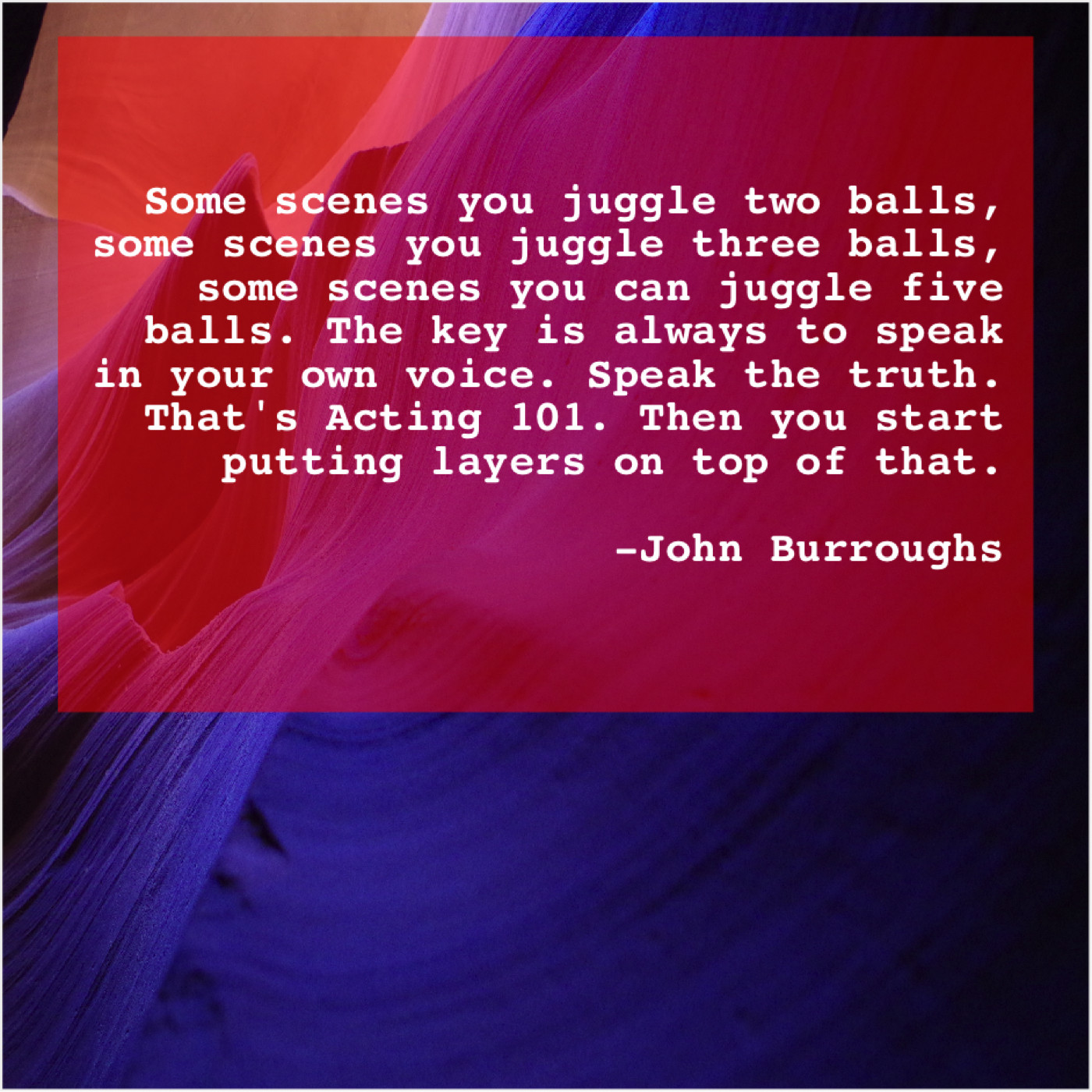 “Some scenes you juggle two balls, some scenes you juggle three balls, some scenes you can juggle five balls. The key is always to speak in your own voice. Speak the truth. That’s Acting 101. Then you start putting layers on top of that.”