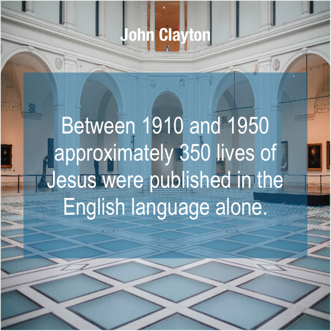 John Clayton John Clayton – Between 1910 and 1950 approximately… February 1, 2019 admin “Between 1910 and 1950 approximately 350 lives of Jesus were published in the English language alone.”-John Clayton