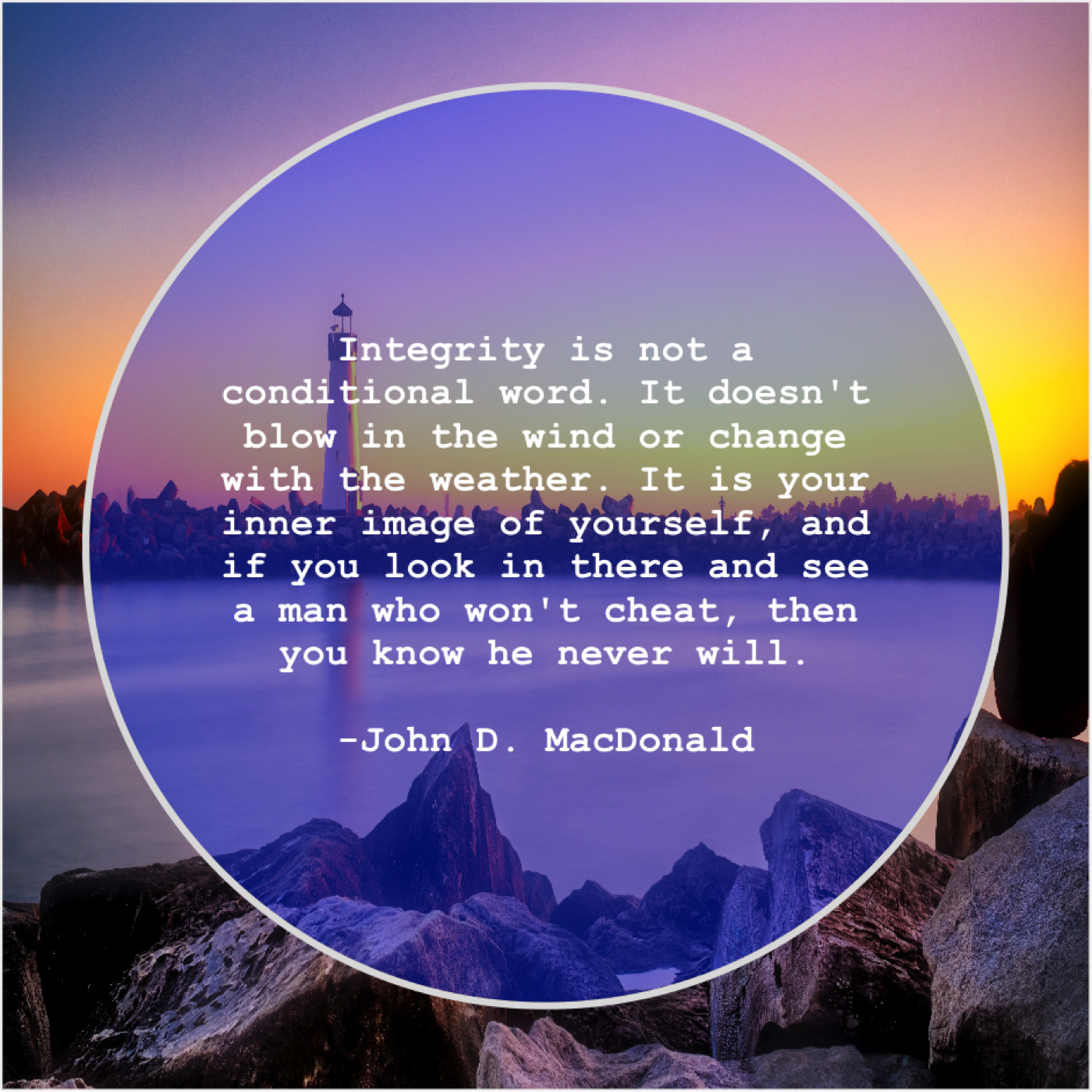 John D. MacDonald John D. MacDonald – Integrity is not a conditional… May 29, 2019 admin “Integrity is not a conditional word. It doesn’t blow in the wind or change with the weather. It is your inner image of yourself, and if you look in there and see a man who won’t cheat, then you know he never will.”-John D. MacDonald