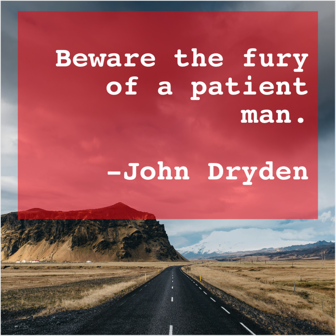John Dryden John Dryden – Beware the fury of a… August 29, 2019 admin “Beware the fury of a patient man.”-John Dryden