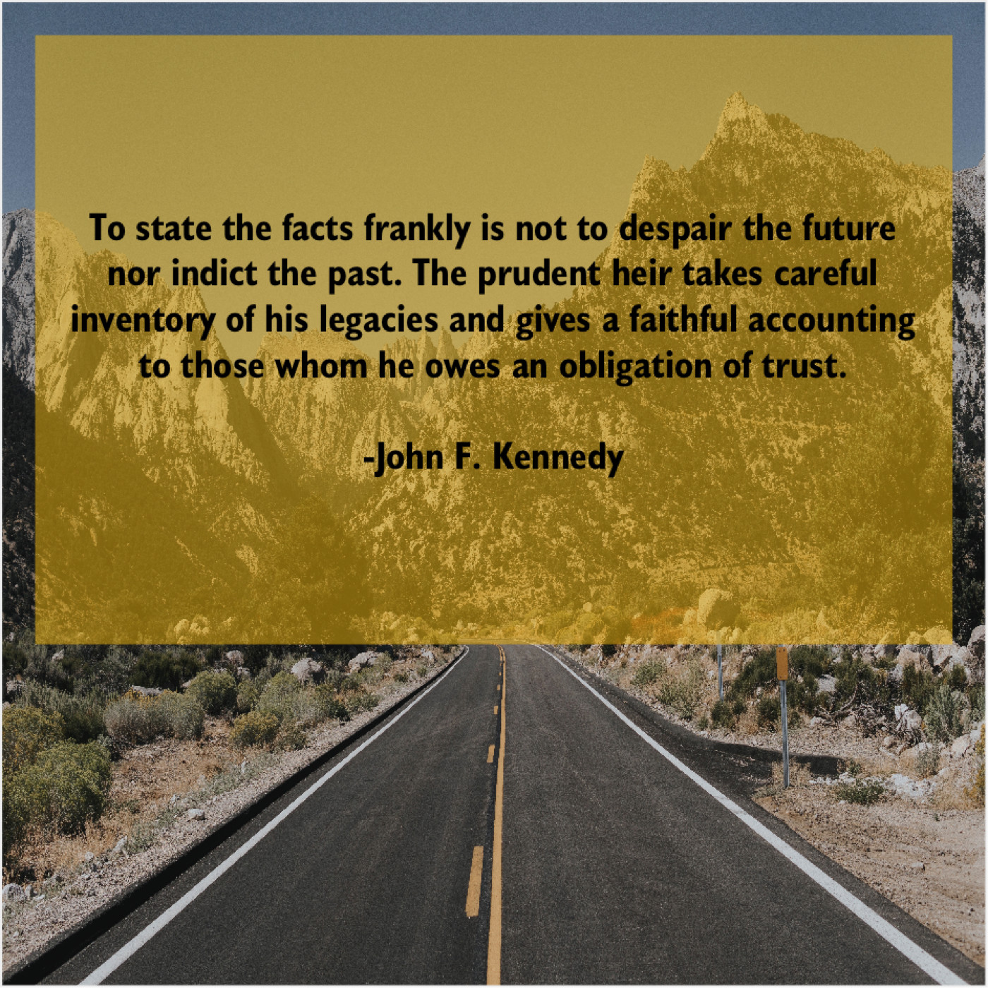 John F. Kennedy John F. Kennedy – To state the facts frankly… January 26, 2019 admin “To state the facts frankly is not to despair the future nor indict the past. The prudent heir takes careful inventory of his legacies and gives a faithful accounting to those whom he owes an obligation of trust.”-John F. Kennedy