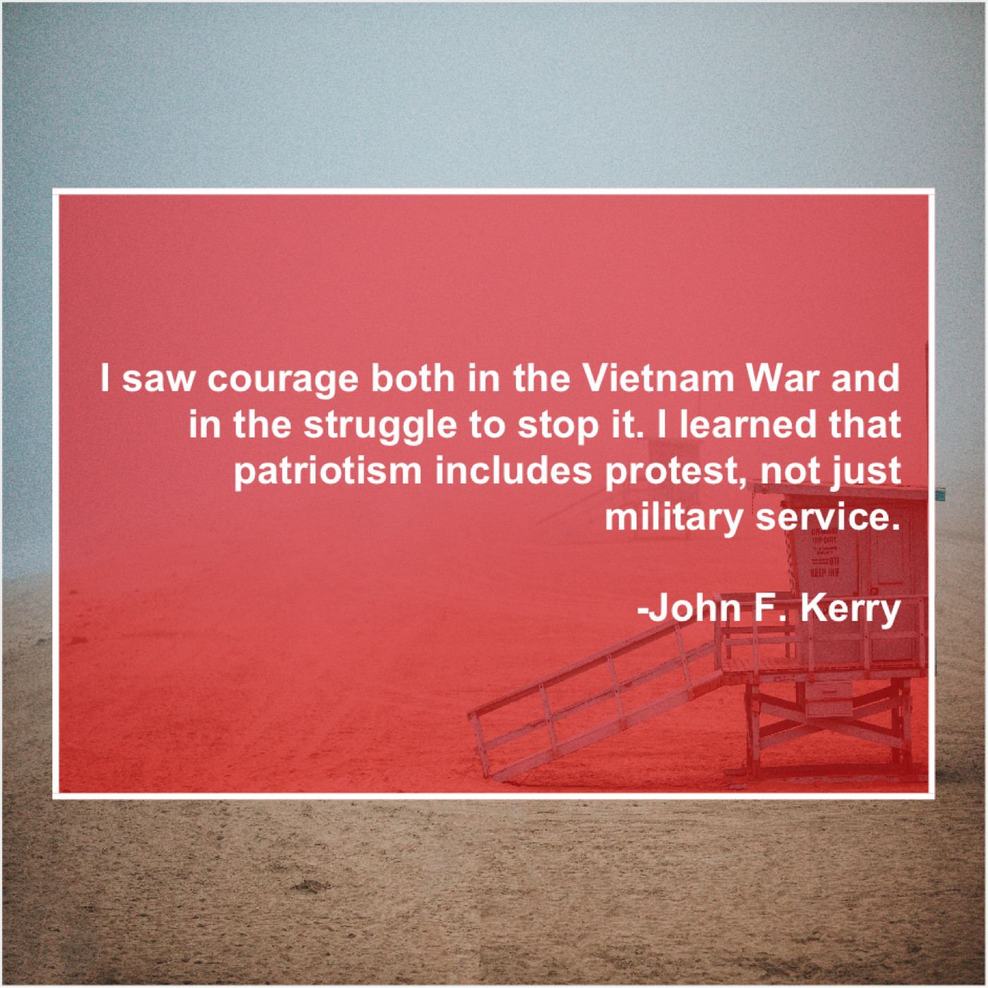 John F. Kerry John F. Kerry – I saw courage both in… April 7, 2019 admin “I saw courage both in the Vietnam War and in the struggle to stop it. I learned that patriotism includes protest, not just military service.”-John F. Kerry